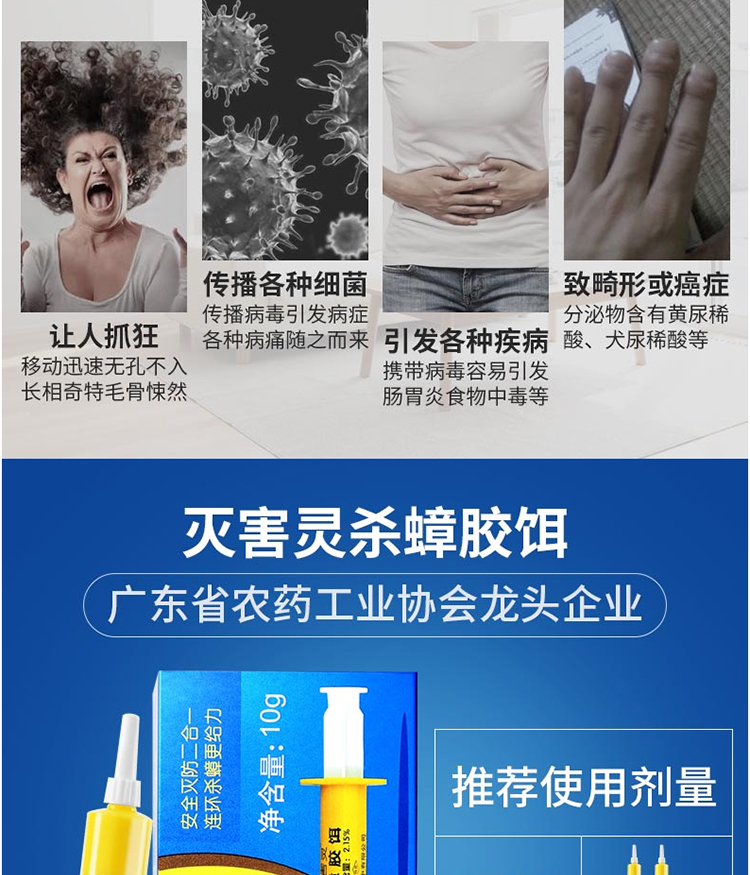 灭害灵杀蟑螂厨房家用杀虫药杀蟑胶饵蟑螂全窝端小强克星10g