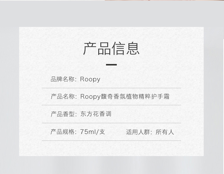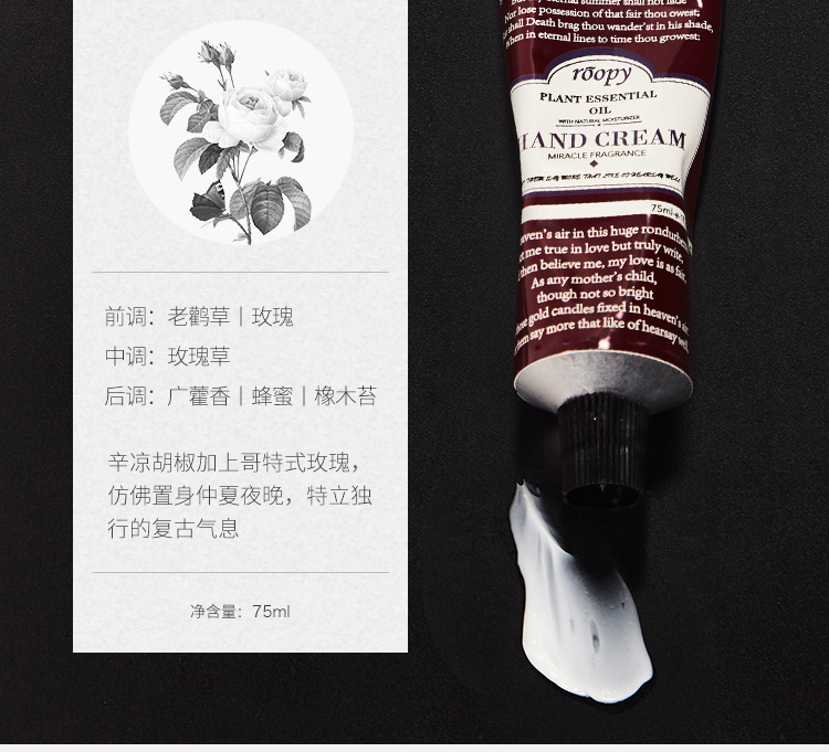 roopy润培馥奇香氛植物精粹护手霜 六月蔷薇 75ml