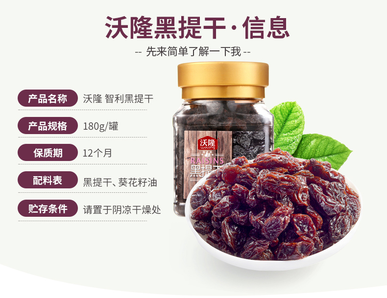 沃隆黑提干180g/罐 黑葡萄干提子干特产孕妇休闲零食