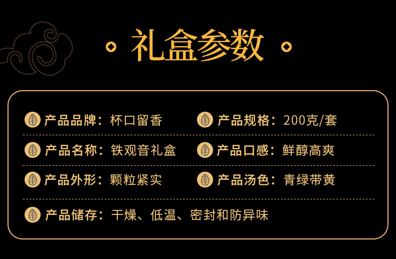 您所在的位置:首页 > 休闲食品  > 茗茶 > 铁观音  > 杯口留香铁观音礼盒装 50g*4罐