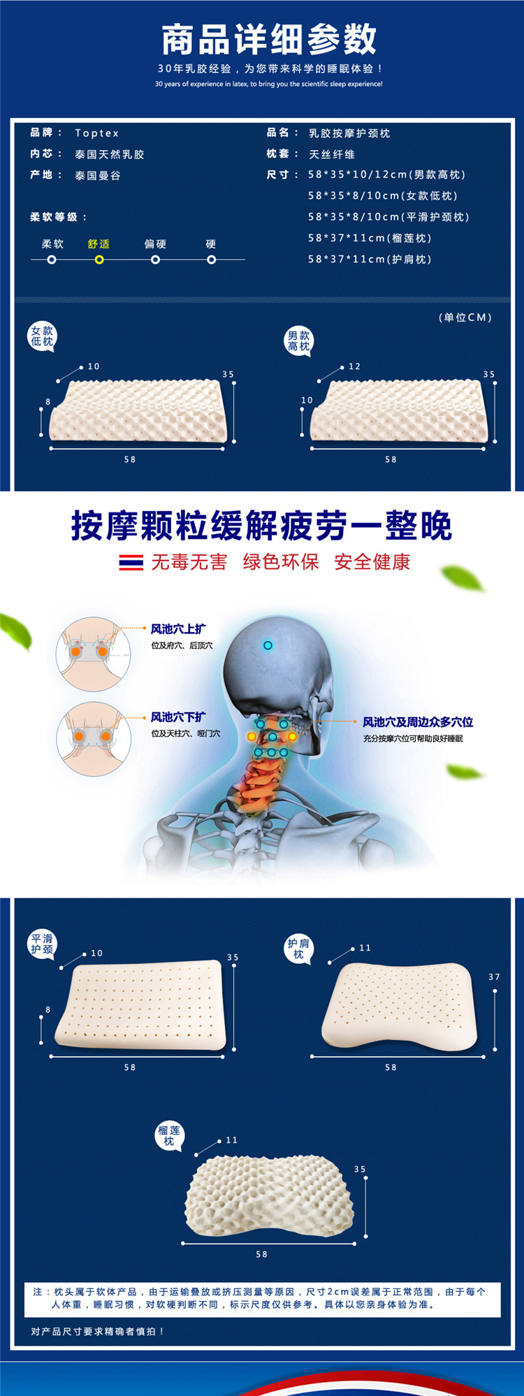 泰国Toptex-高低平滑乳胶枕