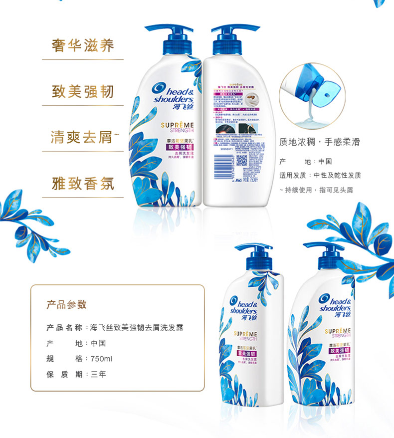 海飞丝致美轻盈洗发露750ml(倍润滋养)