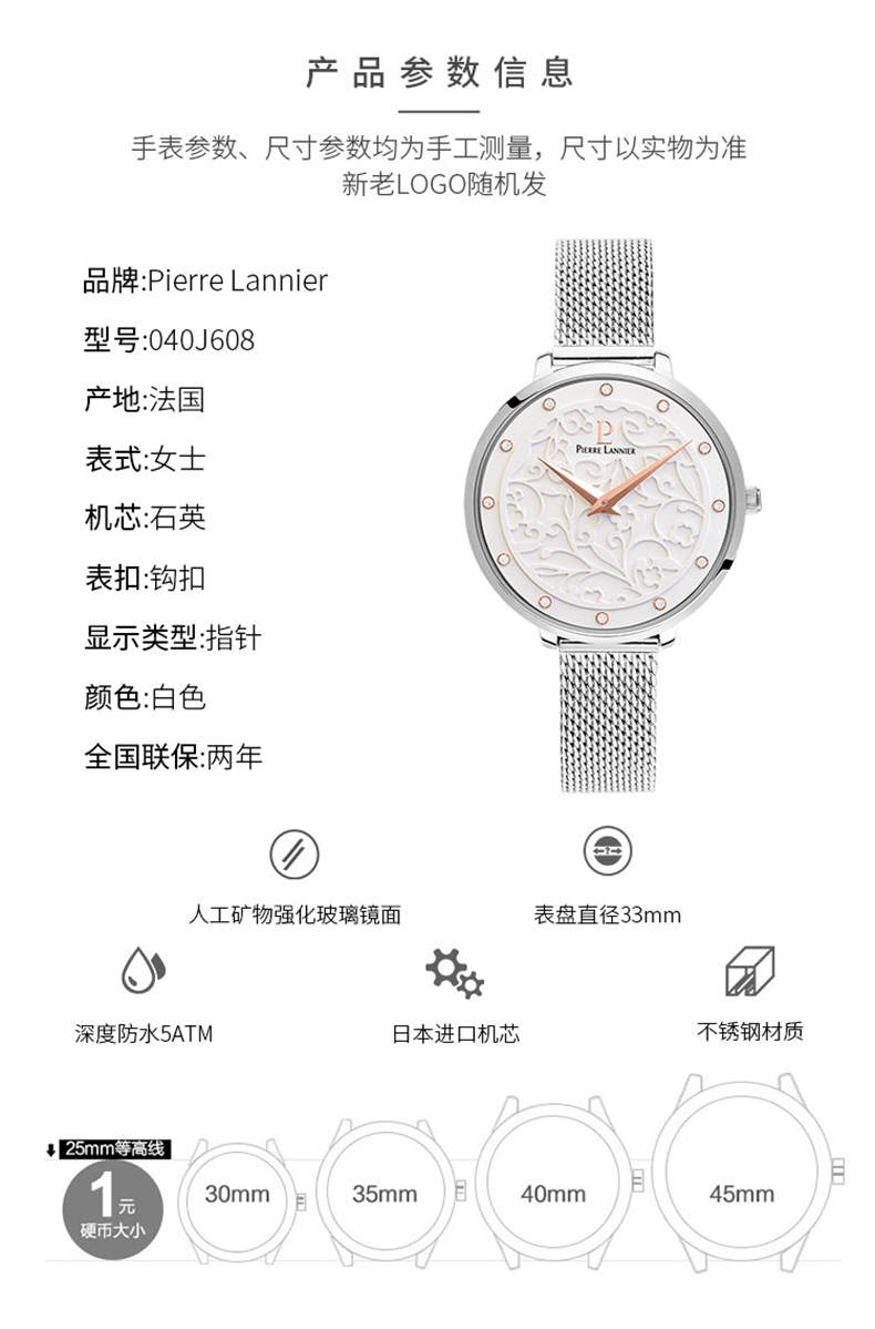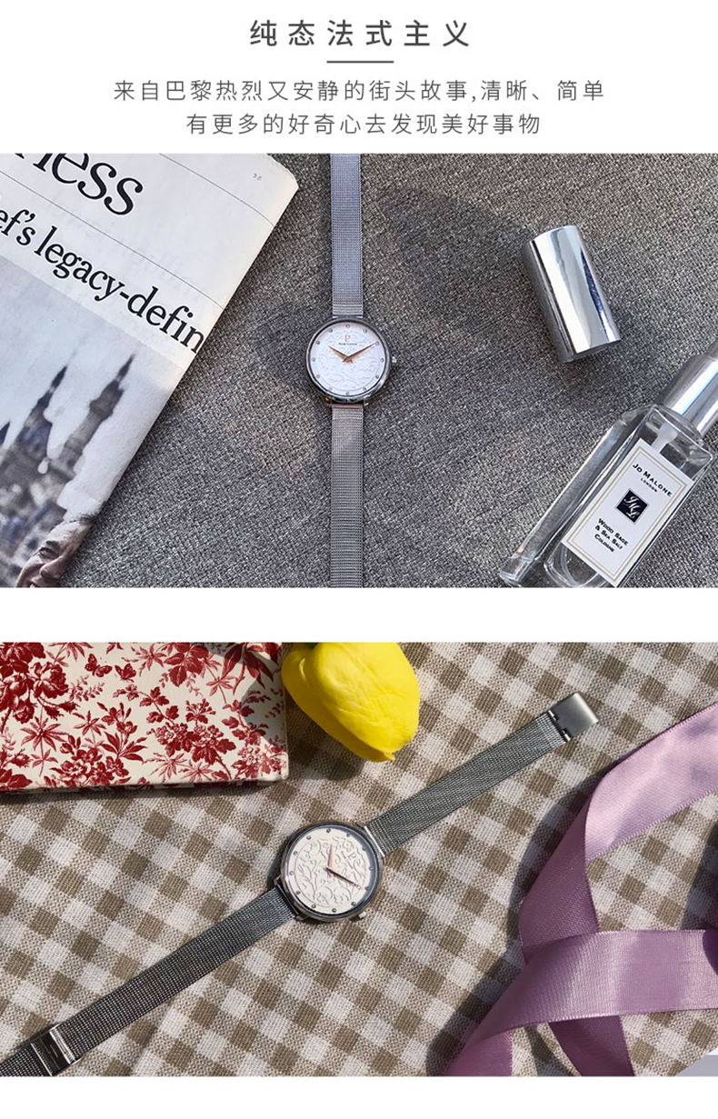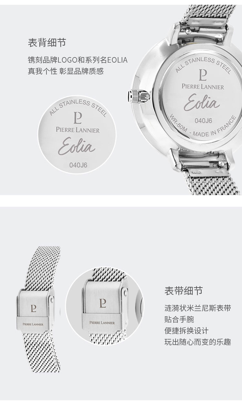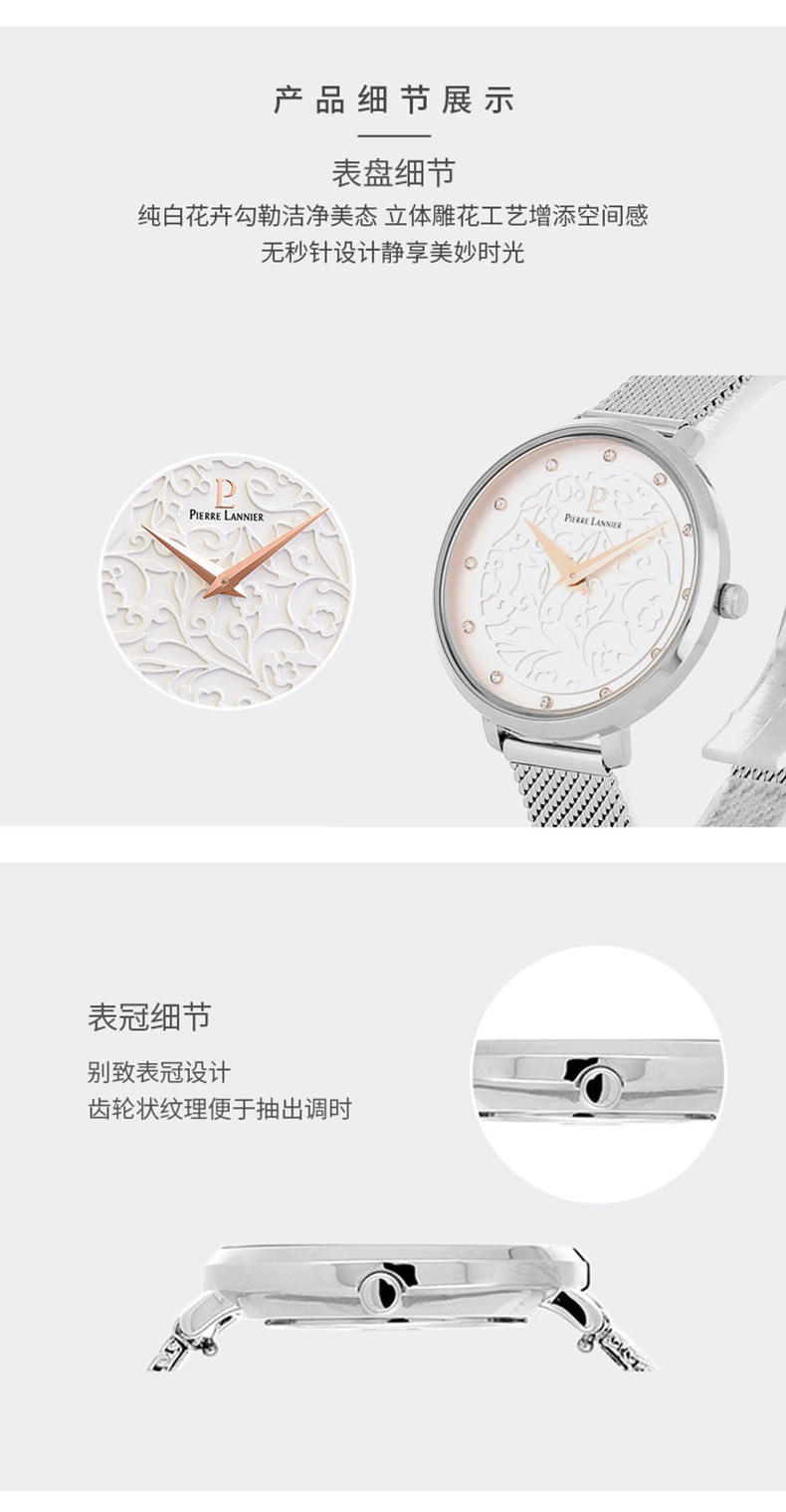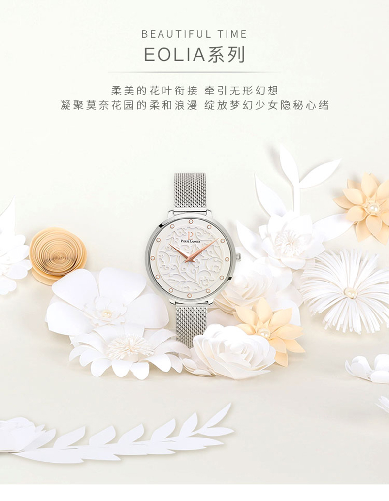 连尼亚(PIERRE LANNIER)手表女 EOLIA浮雕系列莫奈花园时尚3D立体雕花法国进口小众石英女表33mmPL-040J608