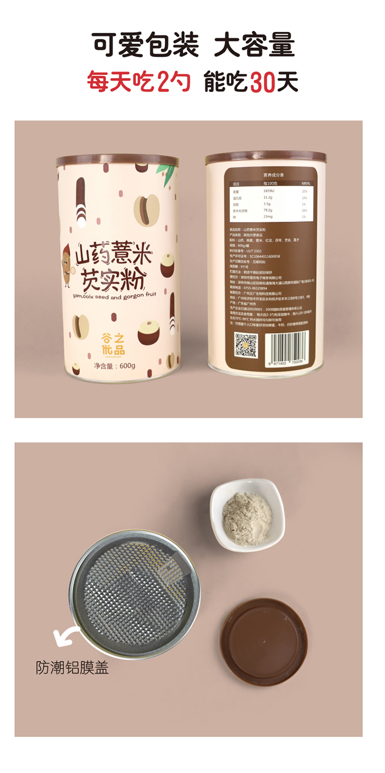 谷之优品山药薏仁芡实粉600g/罐无添加五谷杂粮薏米营养早餐粥健康脾胃祛湿粗粮谷物茯苓代餐粉