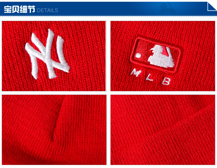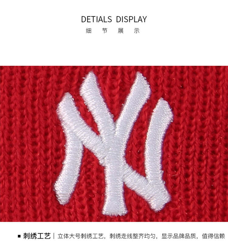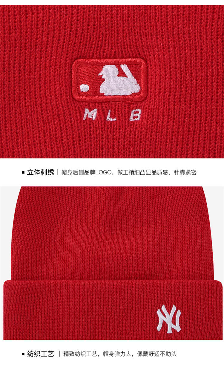 MLB 红色白标小NY毛线帽 32CPB1841-50R