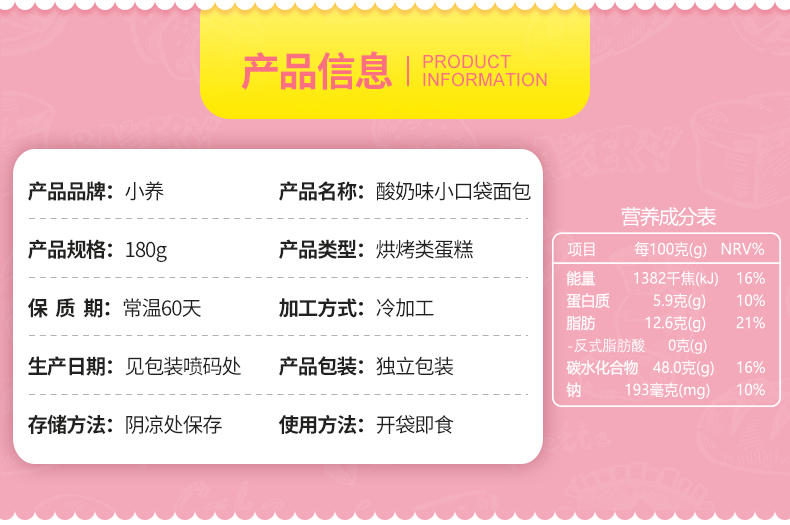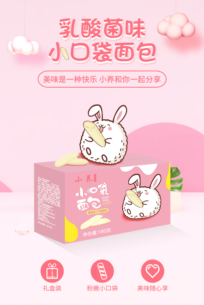 小养乳酸菌味小口袋面包糕点180g/箱