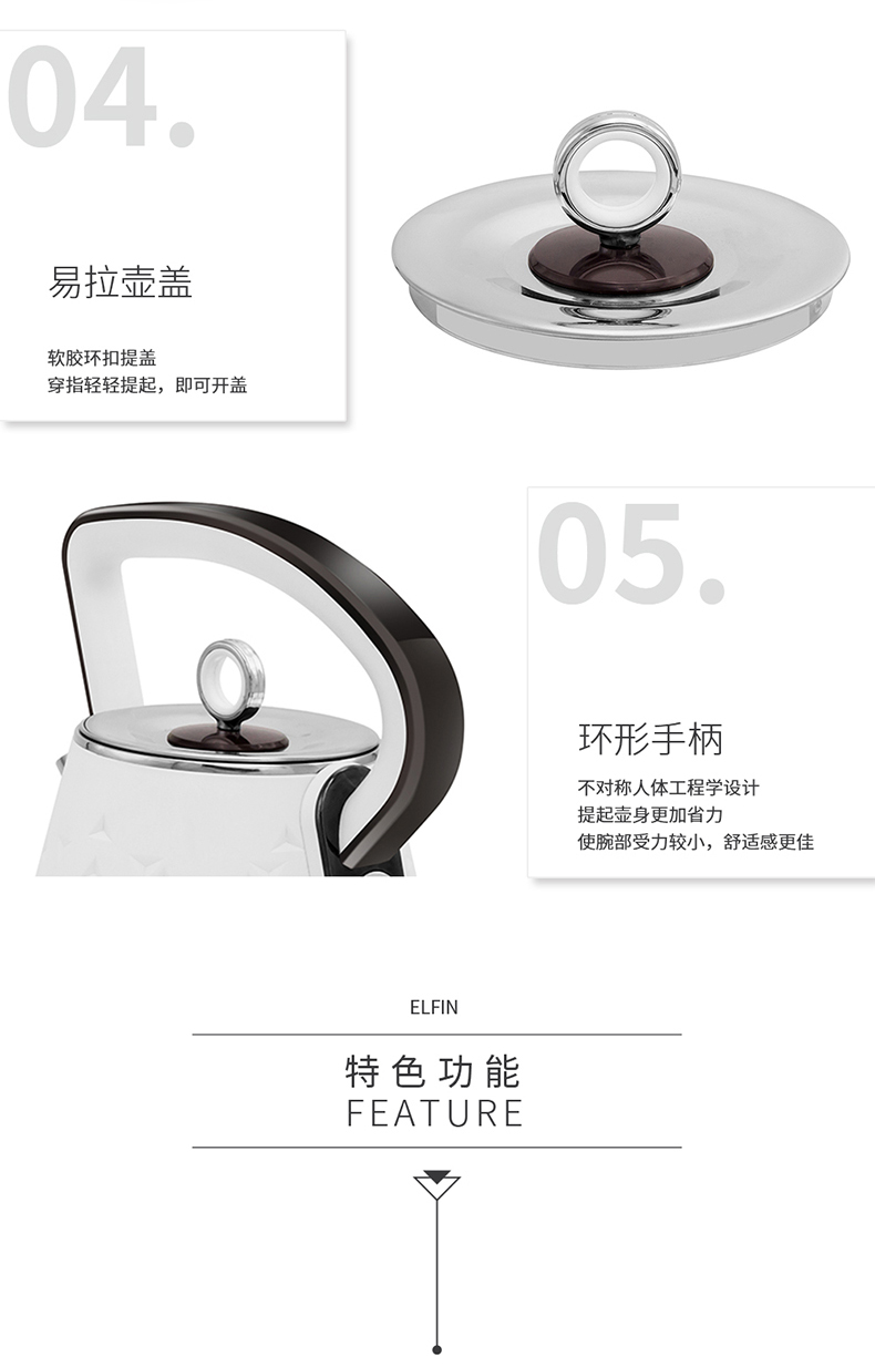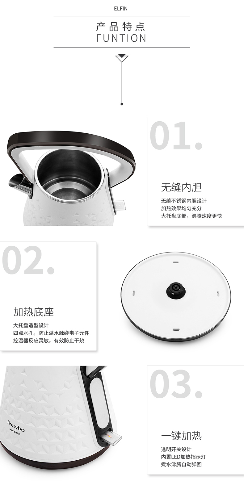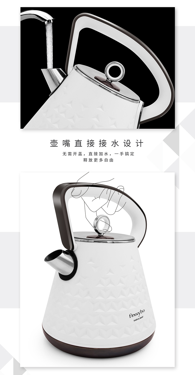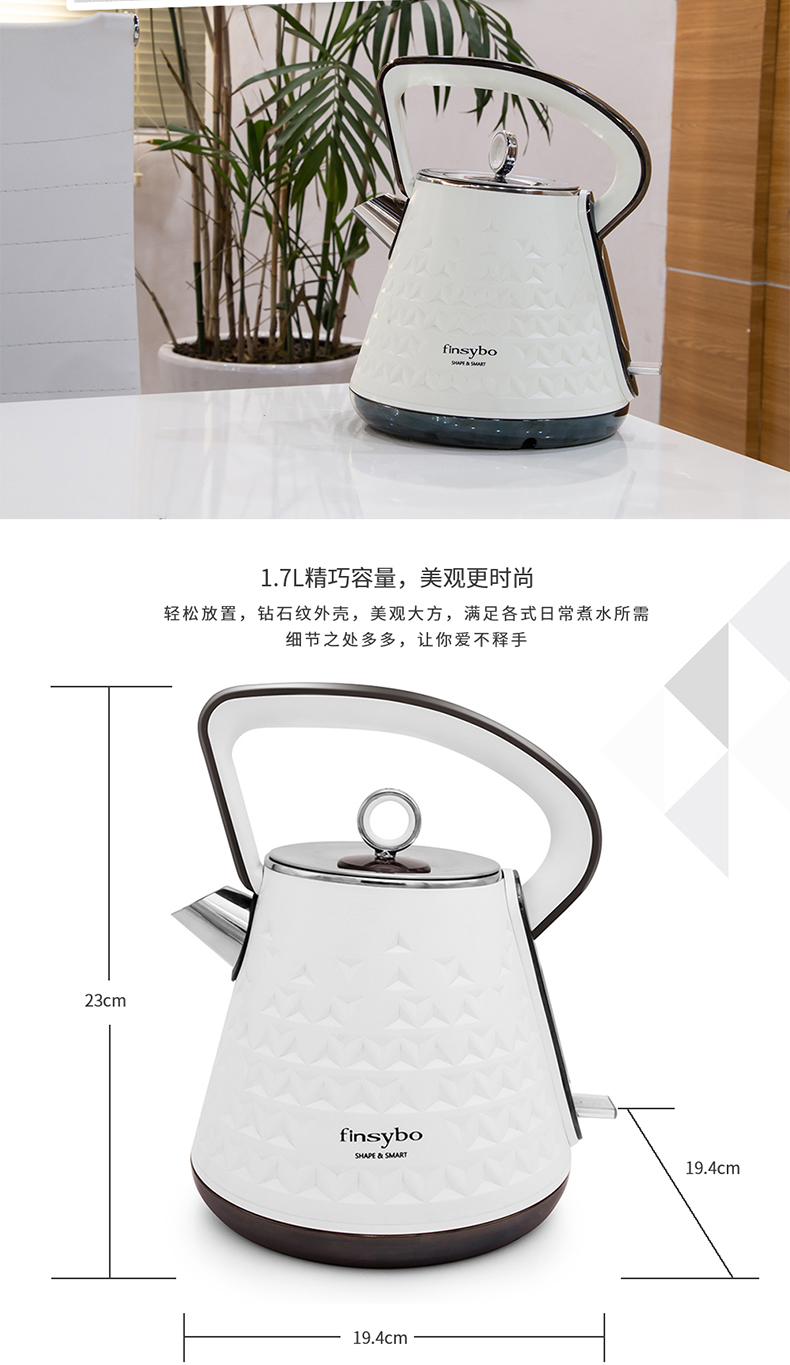 【授权商品】英国finsybo艾尔芬电热水壶F-EKS17A 1.7L 1500W
