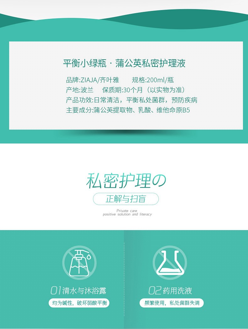 波兰ZIAJA/齐叶雅蒲公英私处护理液 200ml