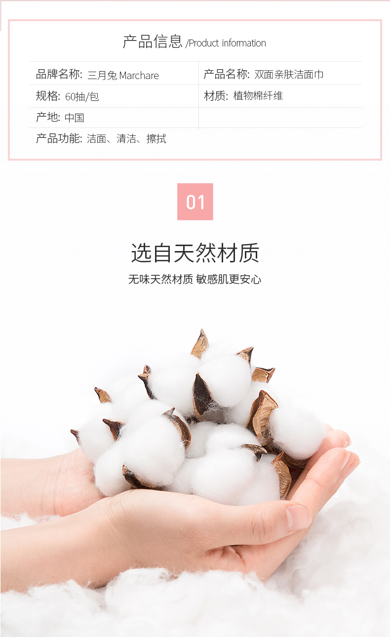 三月兔Marchare AB双面亲肤洁面巾无菌擦脸卸妆一次性洗脸巾
