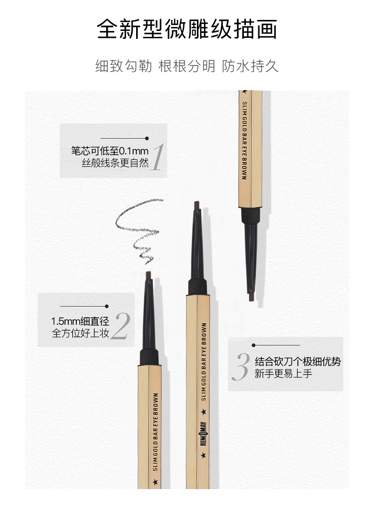 蕾珂美·小金条纤细三角眉笔2#深咖色