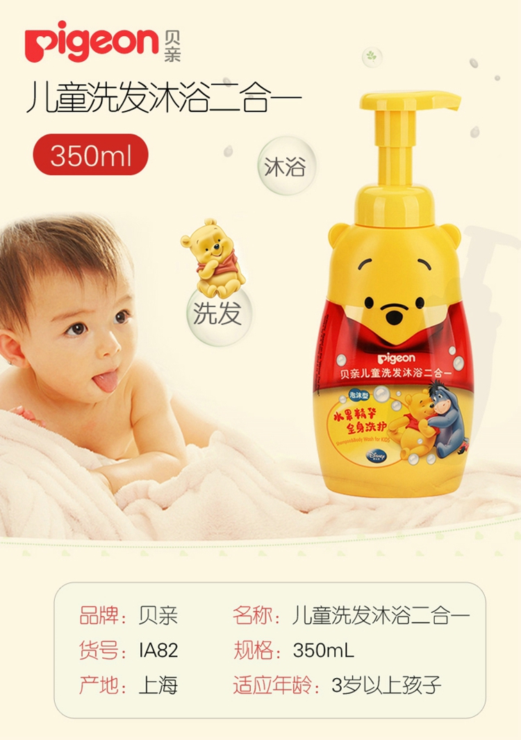 贝亲儿童洗发沐浴二合一+350ml IA82
