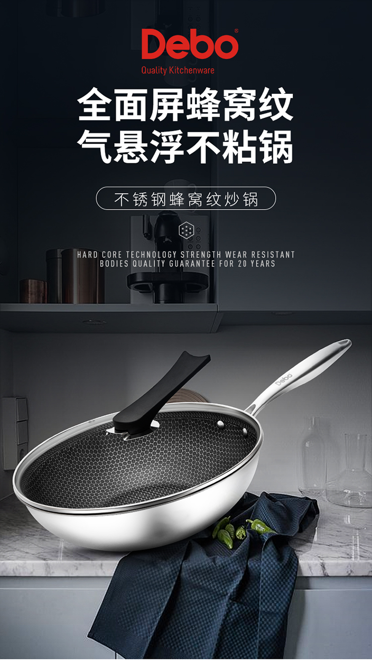 您所在的位置:首页 > 家居日用  > 烹饪锅具 > 炒锅  > 德国Debo德铂纳什蜂窝不锈钢炒锅304不锈钢可视锅盖