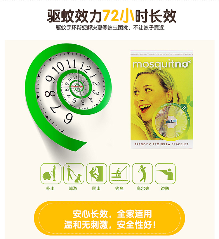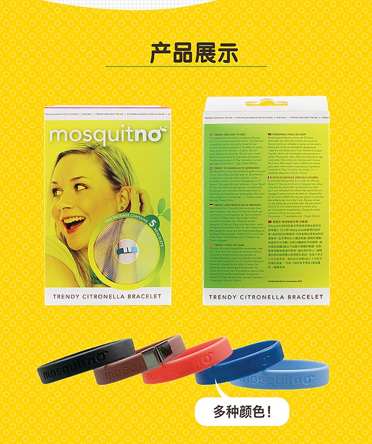 荷兰Mosquitno长效72小时香茅驱蚊手环 5支/盒