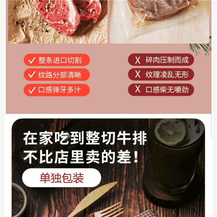 澳洲整切牛排家庭装送牛排酱 西冷牛排650g(5片)/件