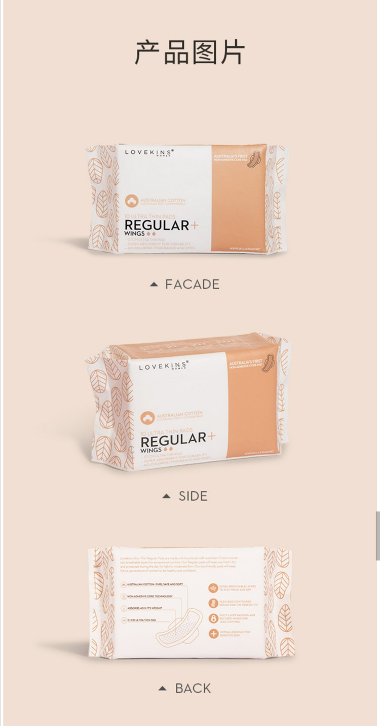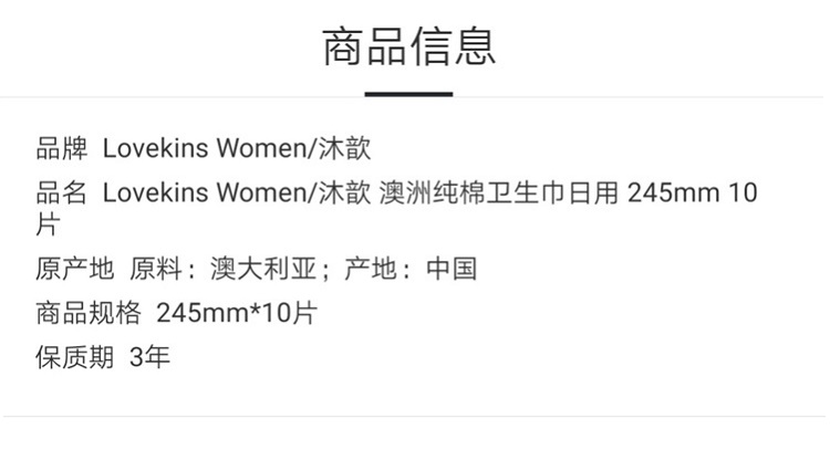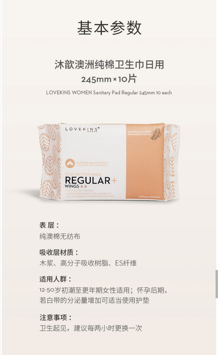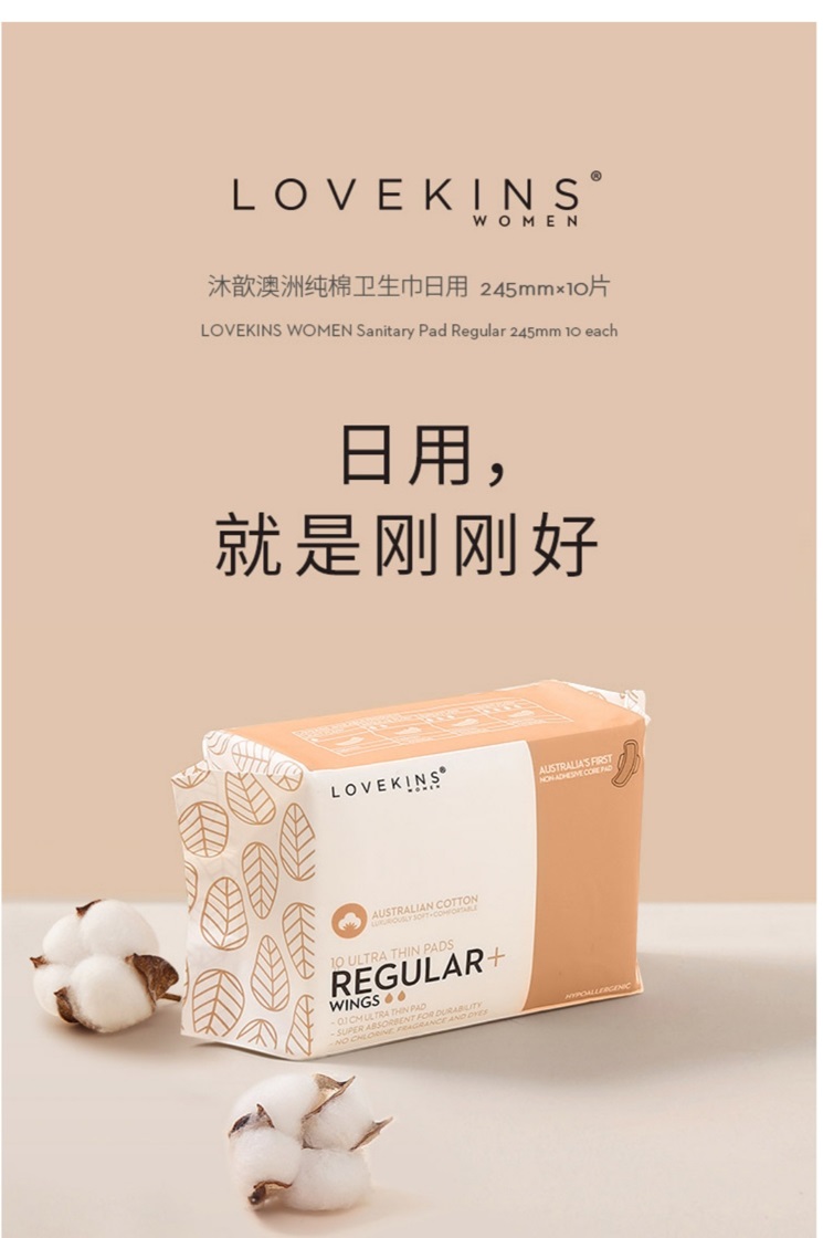 Lovekins沐歆澳洲纯棉卫⽣巾日用(245mm10片/包)