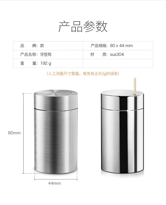 您所在的位置:首页 > 家居日用  > 收纳用品 > 收纳箱/盒  > 一款牙签盒304不锈钢牙签筒创意便携抛甩式牙签桶家居用品牙签罐