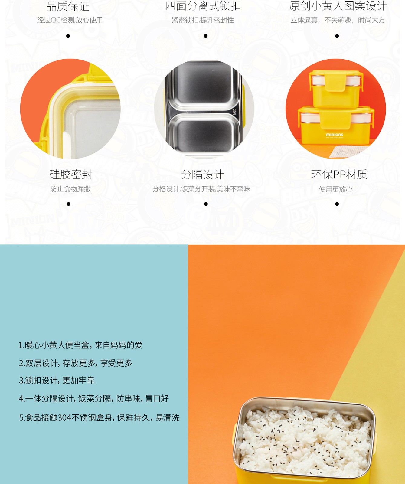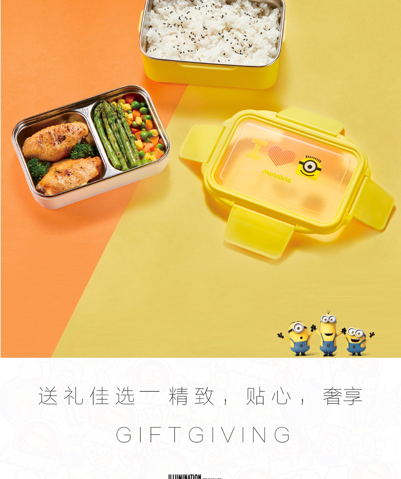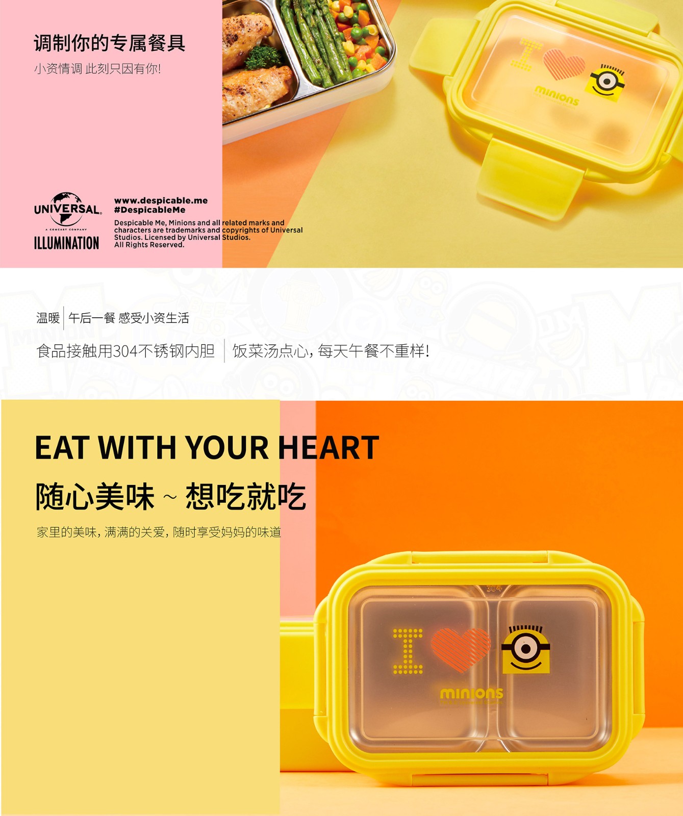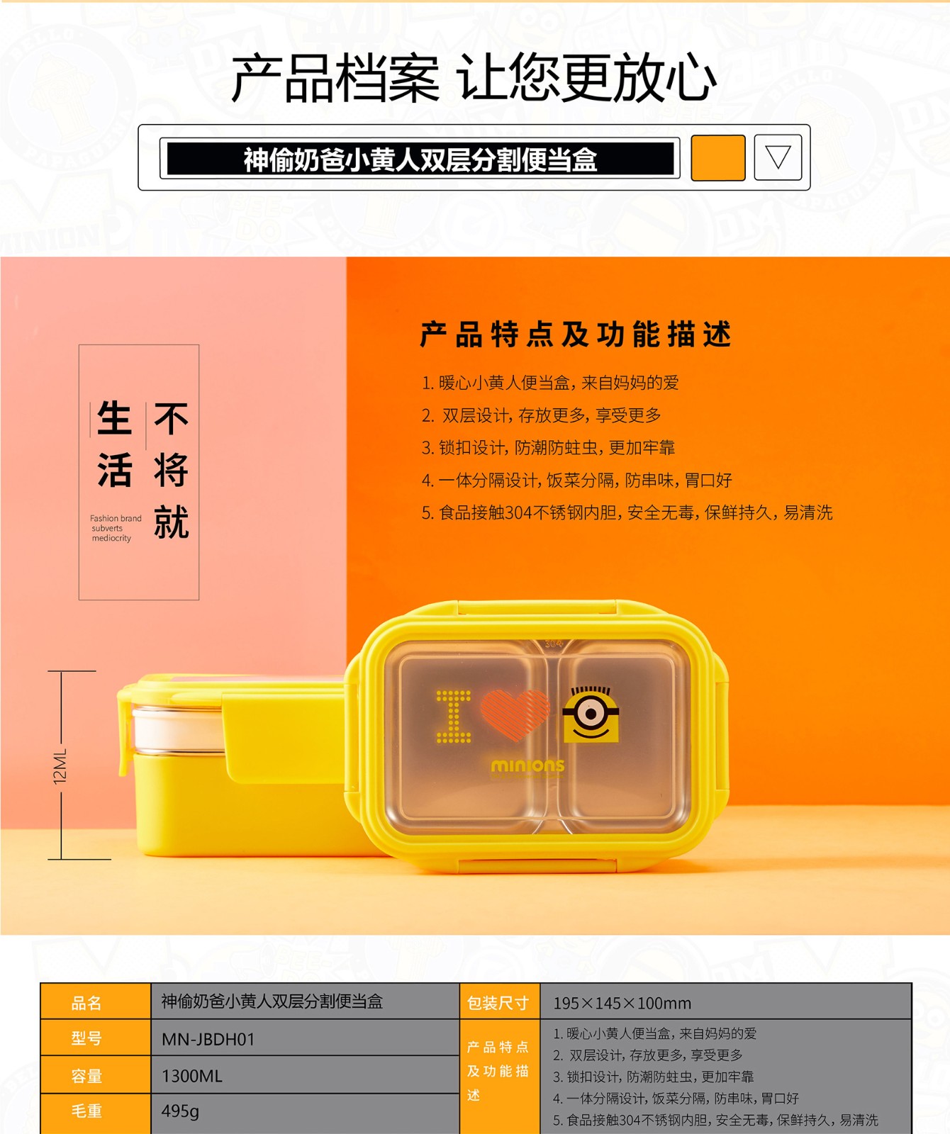 小黄人神偷奶爸系列双层分割便当盒1300ml MN-JBDH01