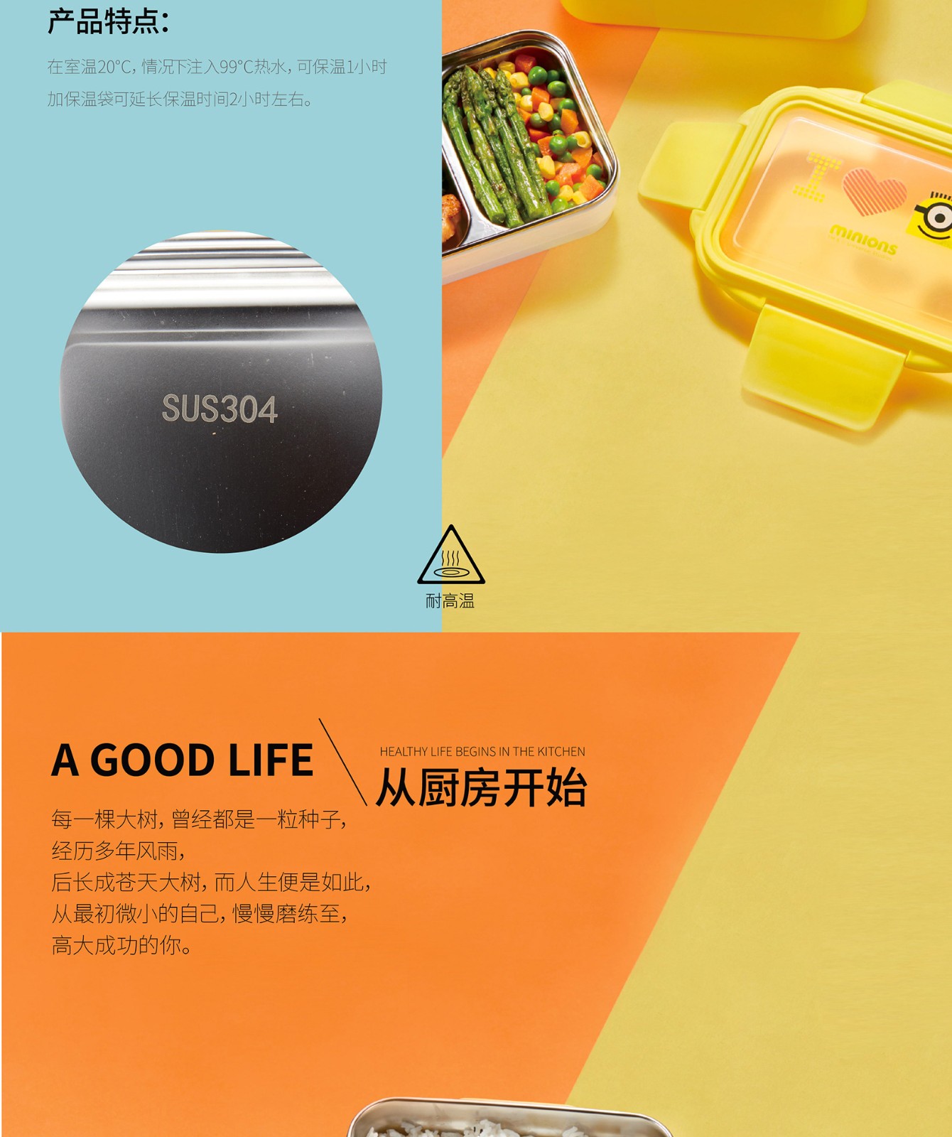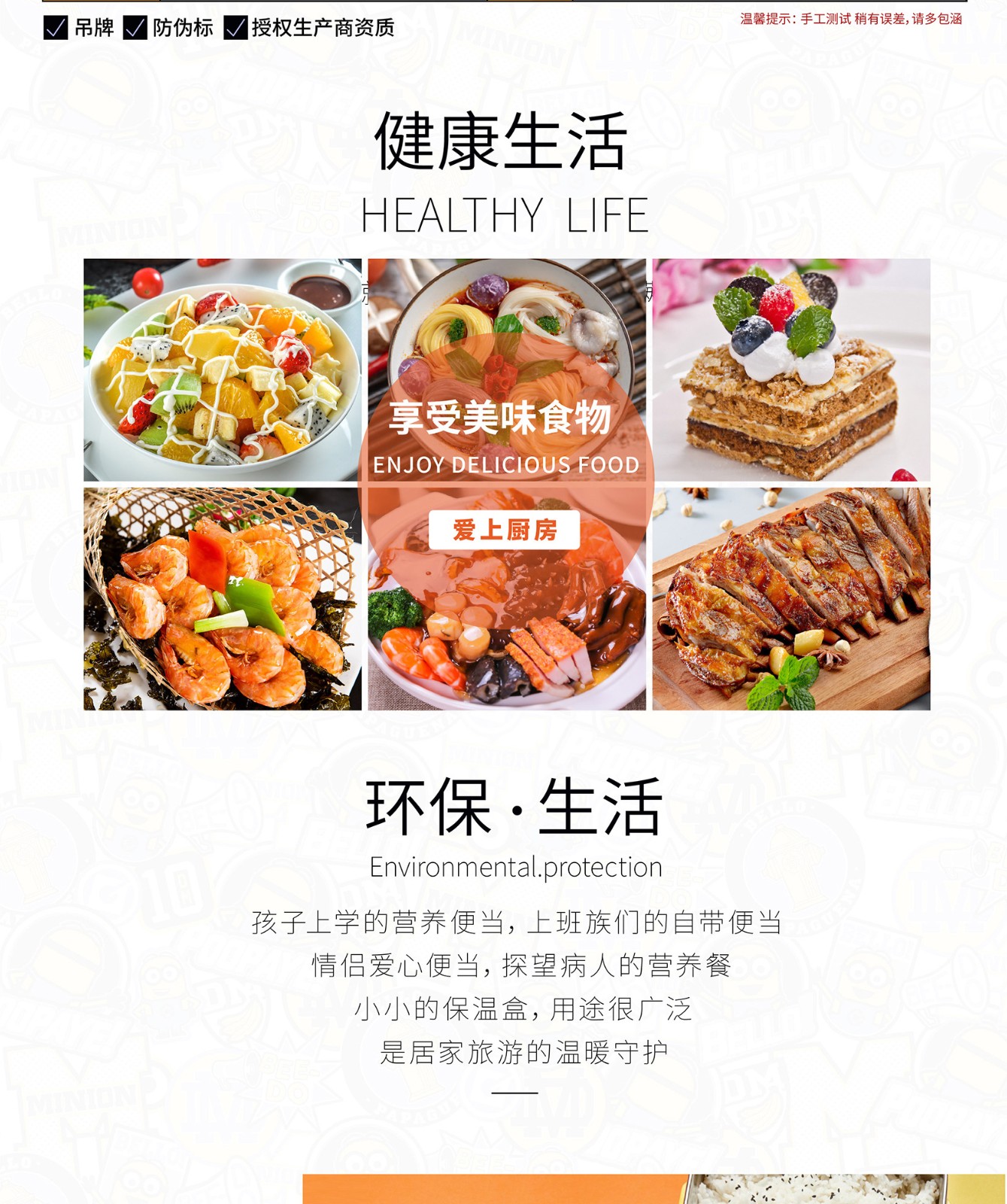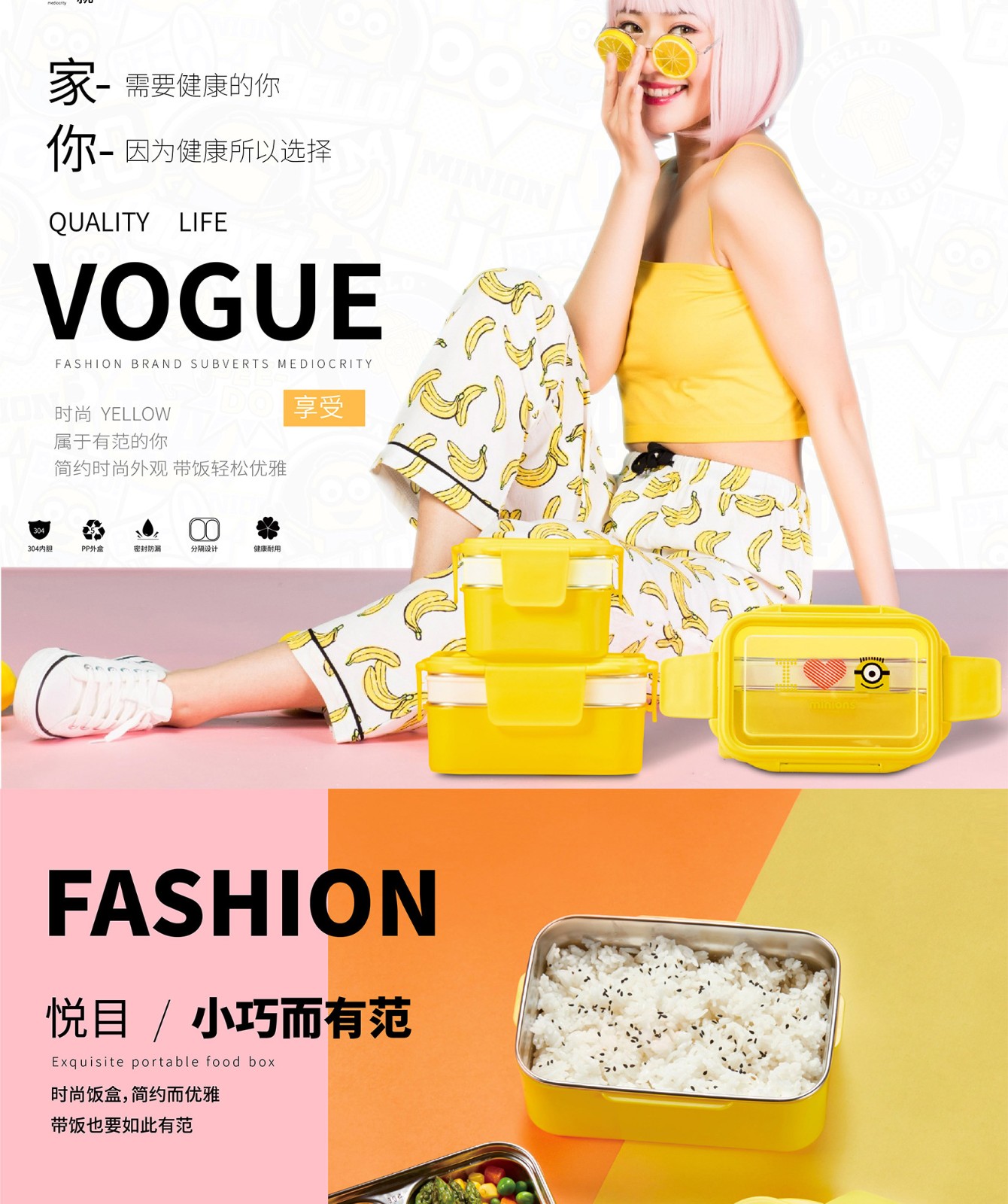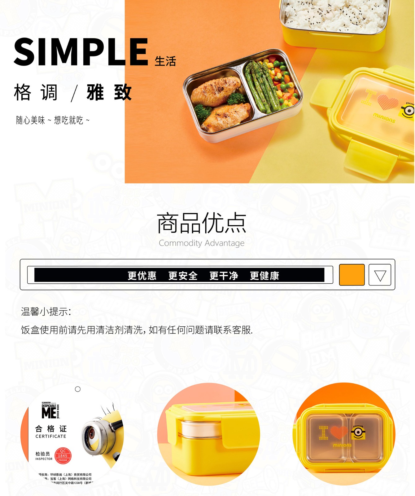 小黄人神偷奶爸系列双层分割便当盒1300ml MN-JBDH01