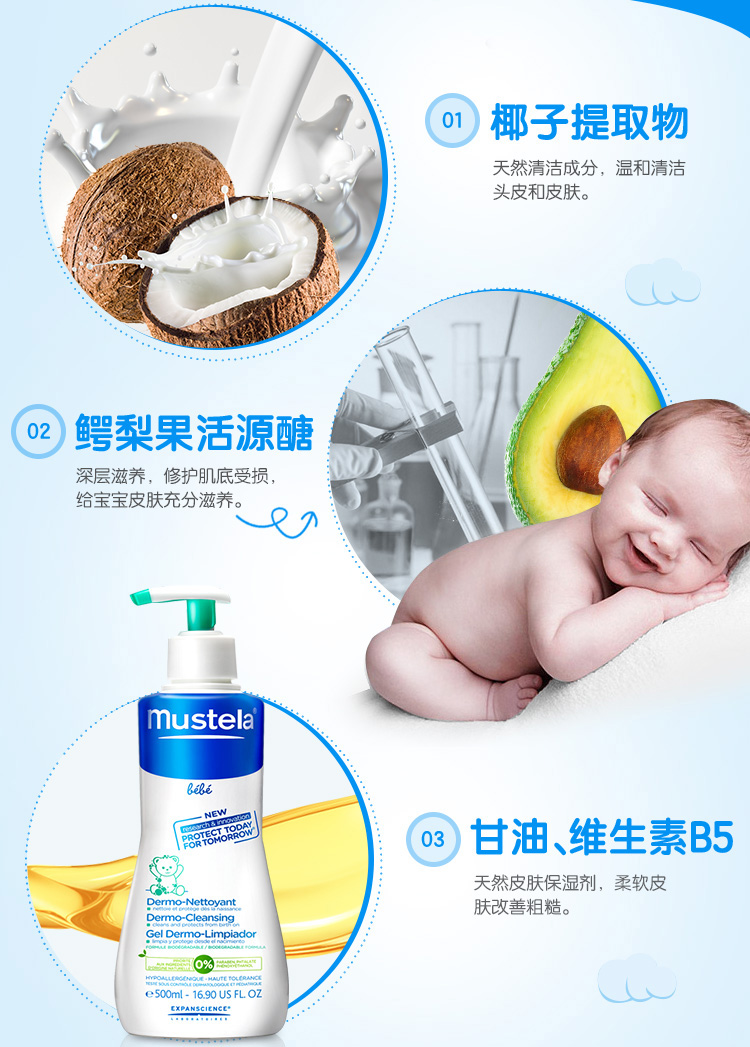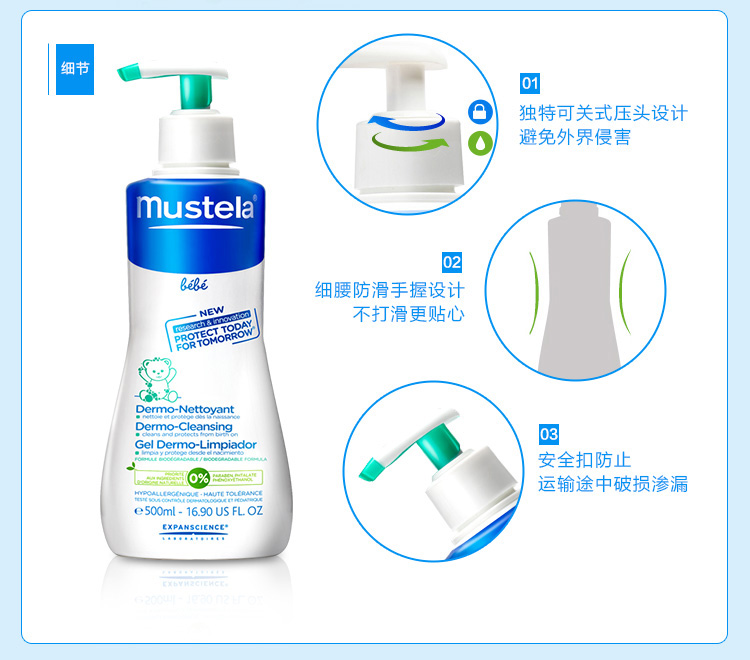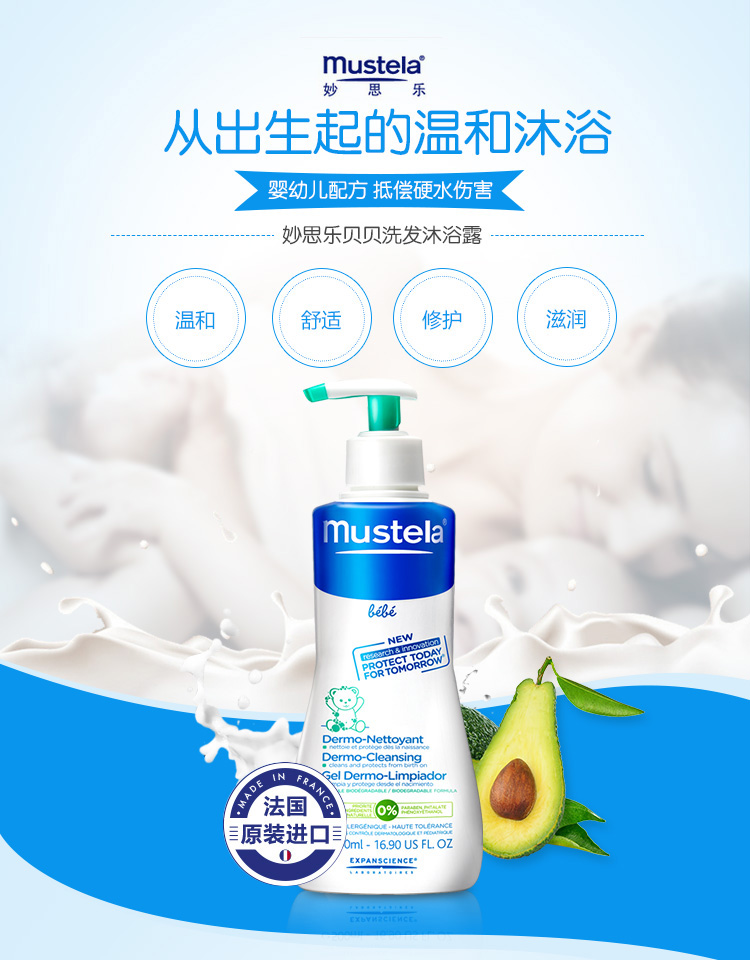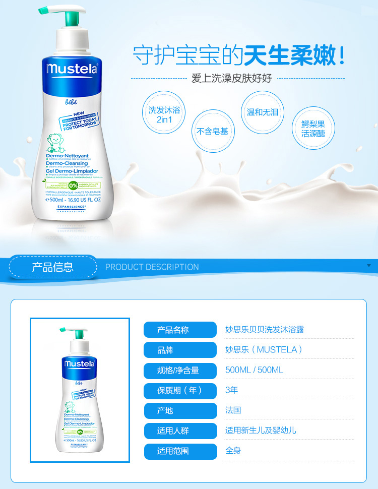 法国妙思乐Mustela 宝宝洗发沐浴露二合一500ml