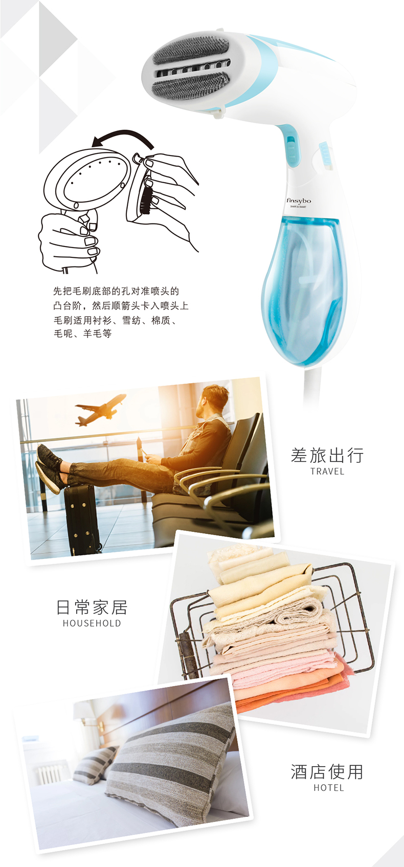 【授权商品】英国finsybo艾琳手持式挂烫机 F-HIM01A 1300W