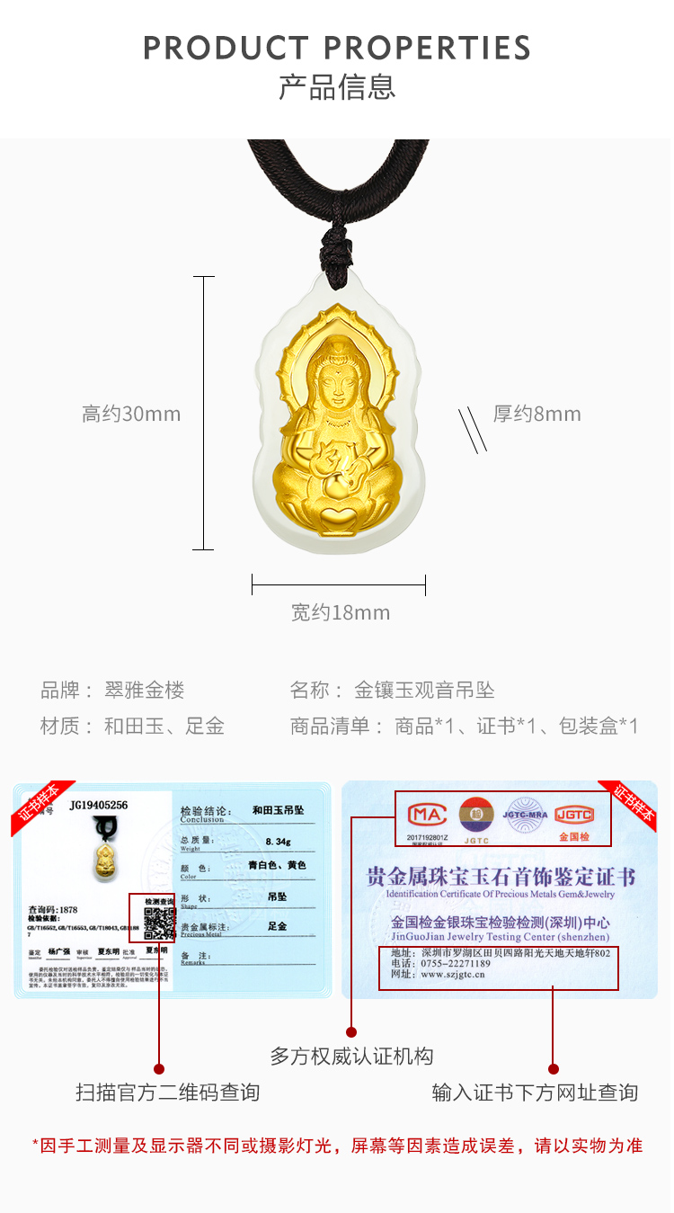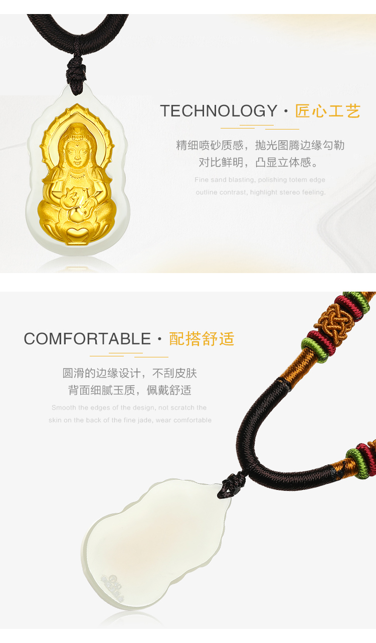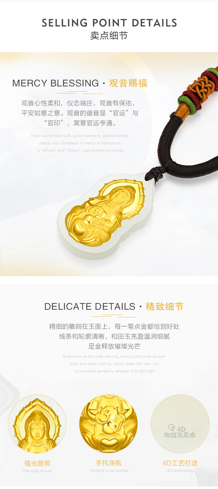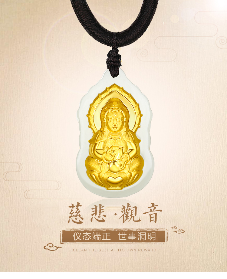 您所在的位置:首页 > 珠宝首饰  > 翡翠玉石 > 吊坠/项链  > 足金镶天然和田玉观音赐福保平安吊坠