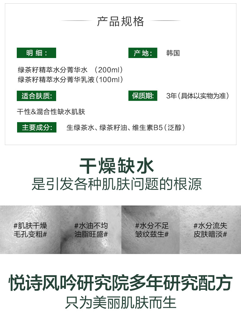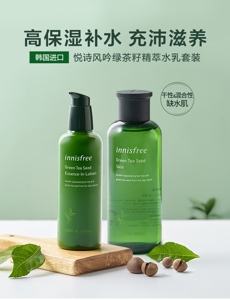【一般贸易】悦诗风吟/Innisfree/绿茶籽精萃水分护肤套装