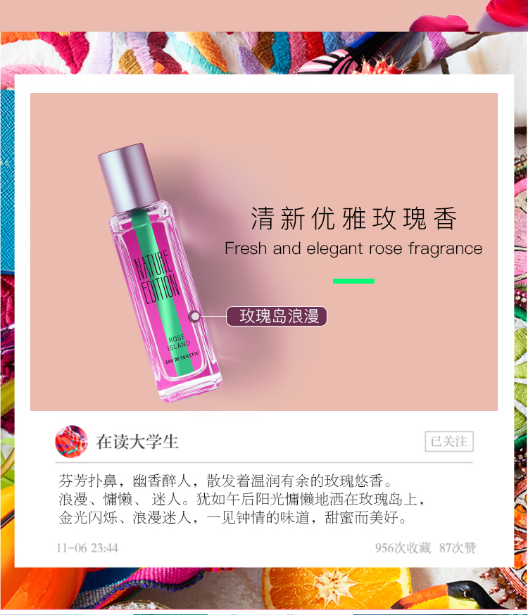 您所在的位置:首页 > 美妆护肤  > 香水彩妆 > 香水  > 自然目录霓虹淡香水玫瑰岛浪漫 25ml