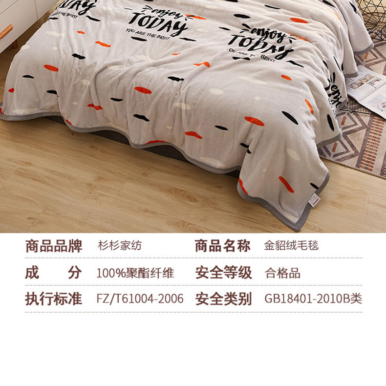 杉杉家纺 金貂绒毛毯 QFS-18413 规格180x200cm