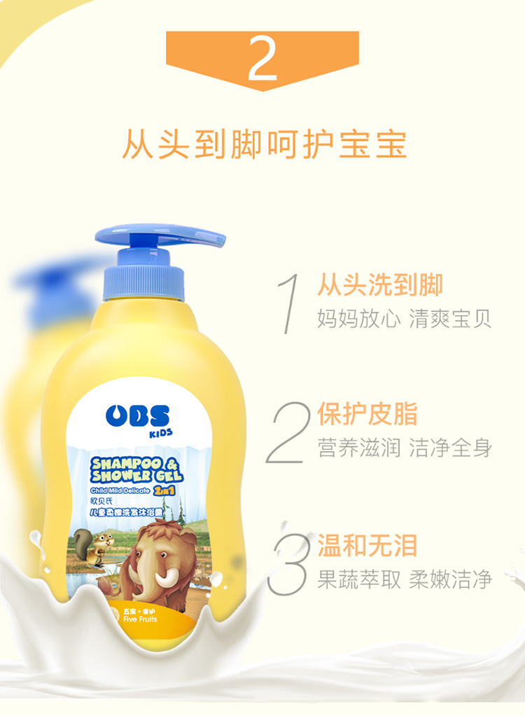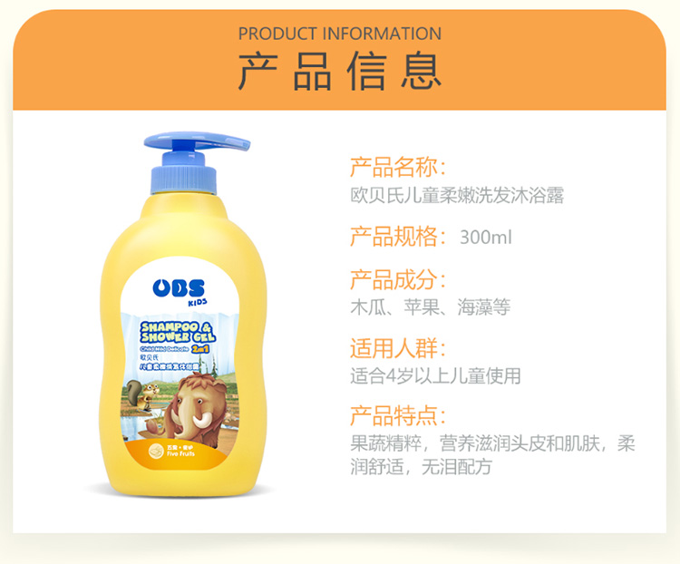 德国欧贝氏2合1儿童(4-14岁)柔润洗发沐浴露2瓶装300ml*2