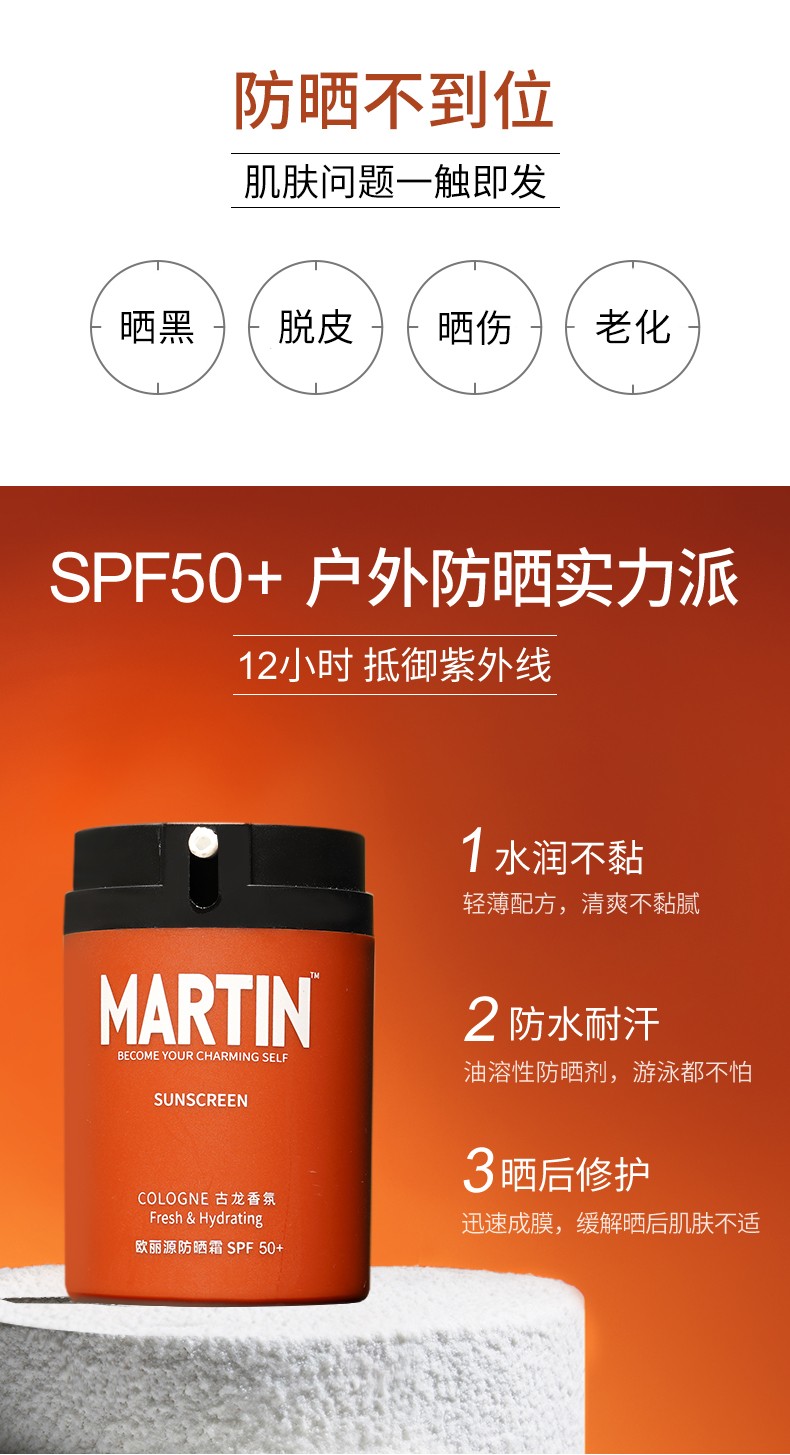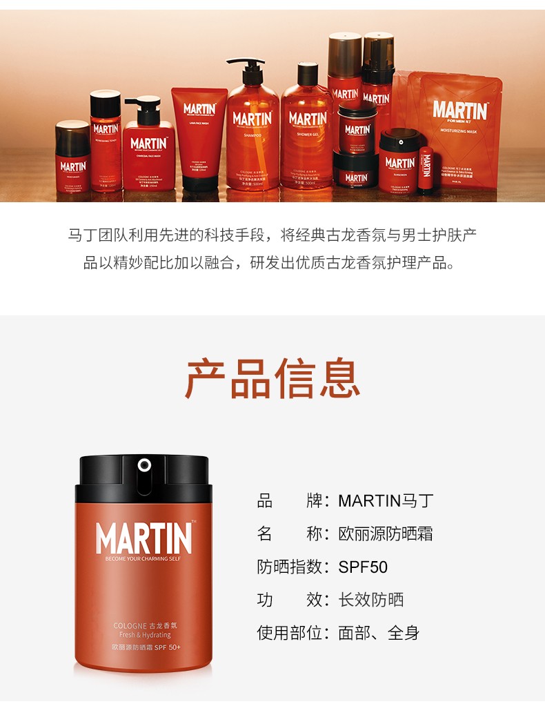 【赠爽肤水30ml】马丁男士防晒霜 SPF50+ 12h长效防晒 50ml