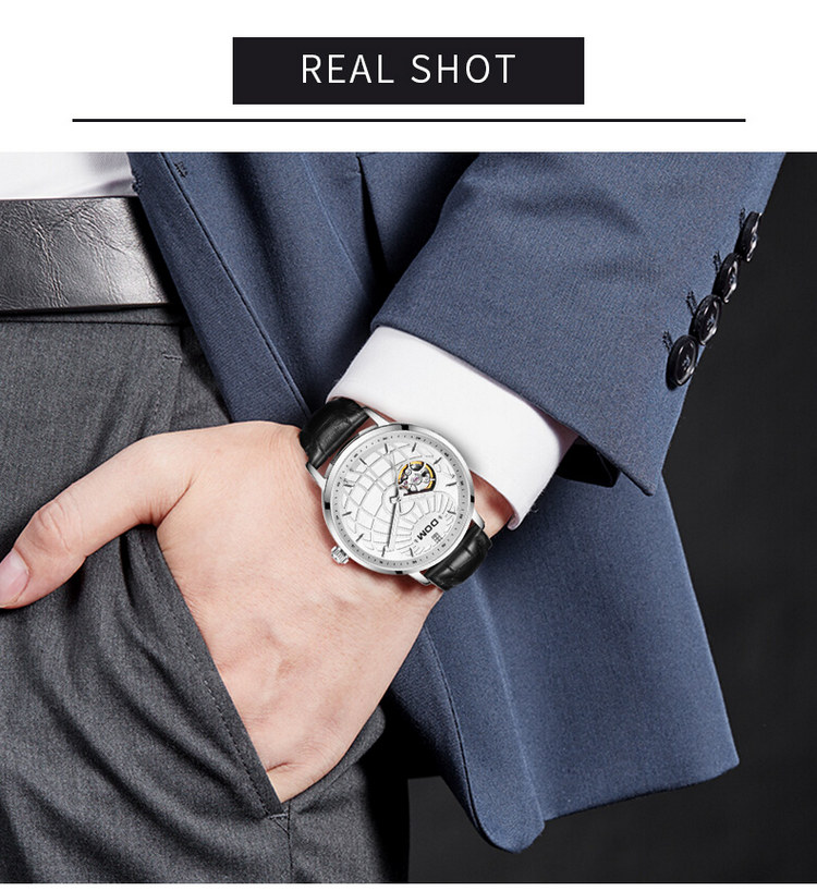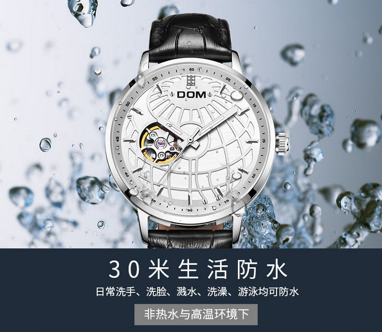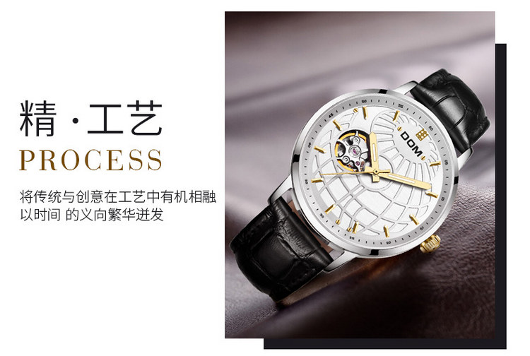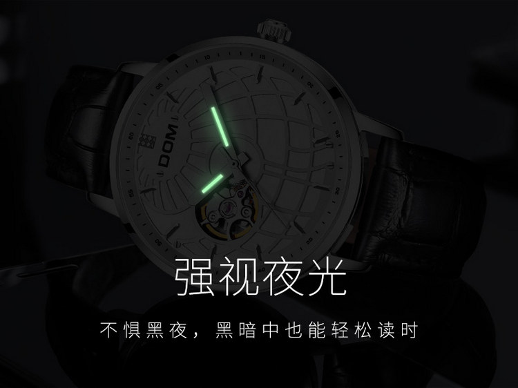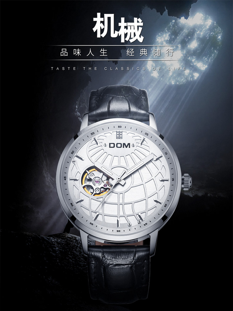 多姆(DOM)手表男全自动镂空机械表男表 M-8100L-7M9金针白盘银壳