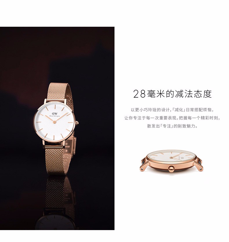 丹尼尔惠灵顿(DanielWellington)DW女表新款金属编织表带28mm 钢带金色边白盘DW00100219