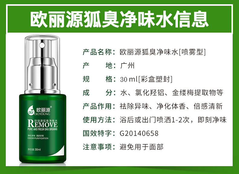 欧丽源狐臭喷雾净味水男女去狐臭腋臭根除狐臭夏季身体去狐臭香体露祛味腋下祛臭喷雾喷剂去除脚臭30ml
