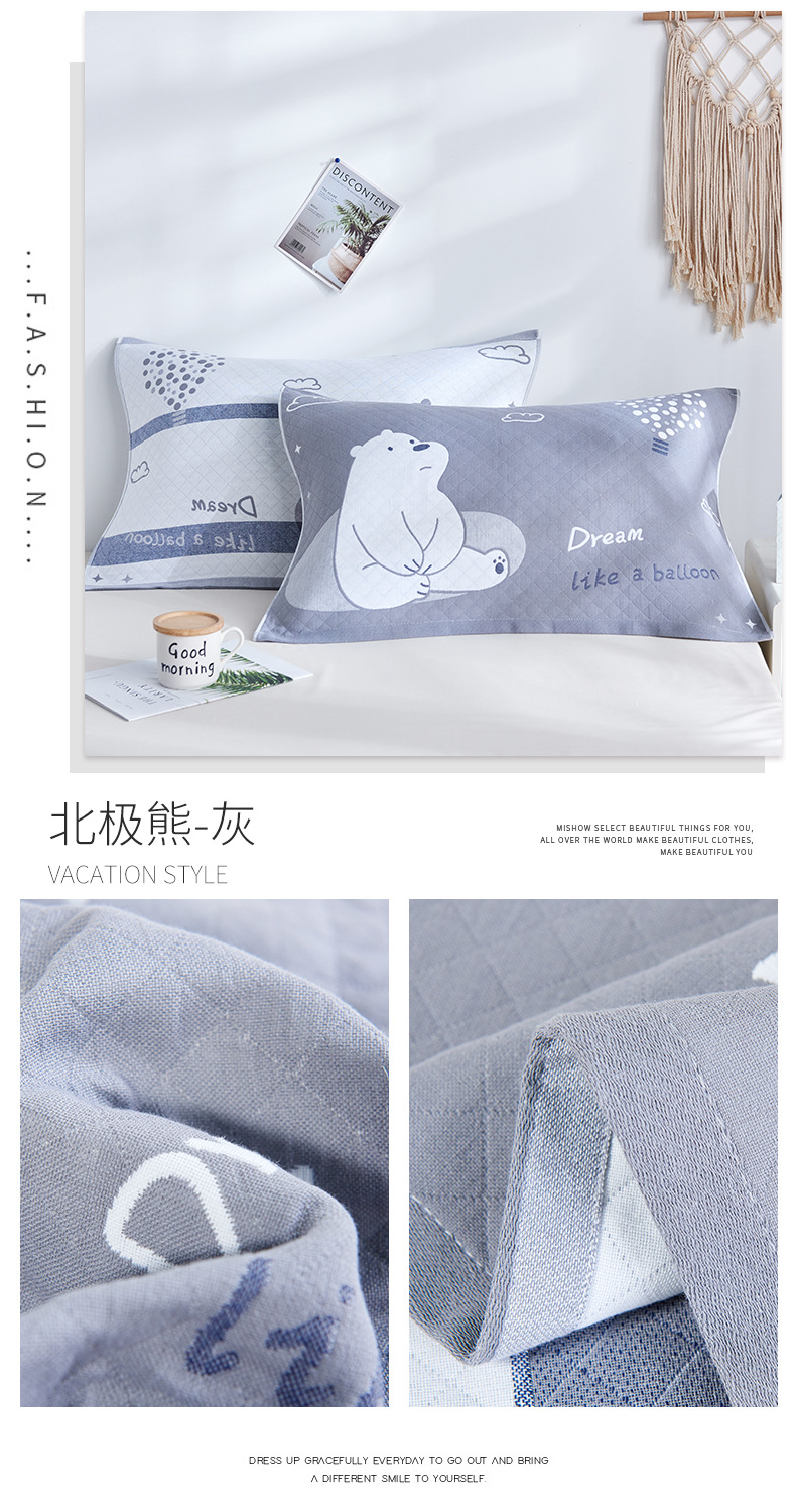 遇洁轩 全棉三层纱夹棉枕巾(一对装)52x80cm(海底世界蓝)