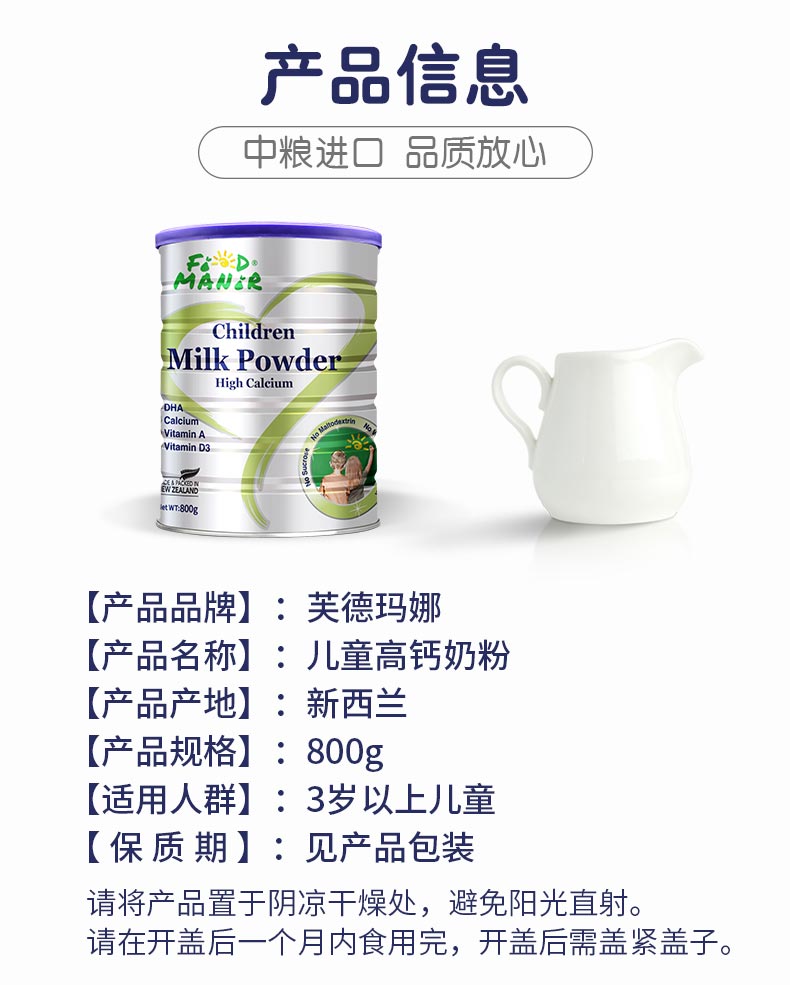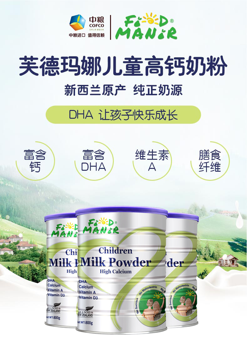 芙德玛娜(FOODMANOR) 儿童高钙奶粉 新西兰进口