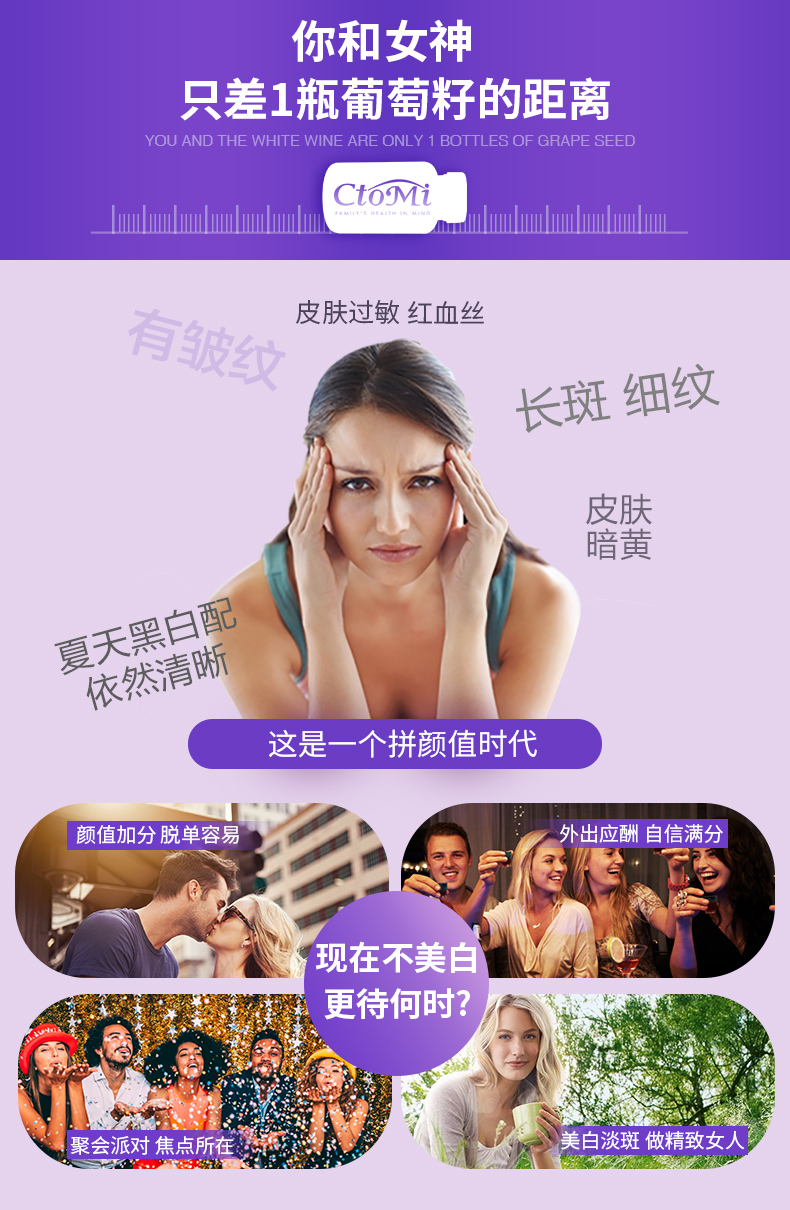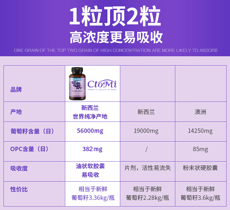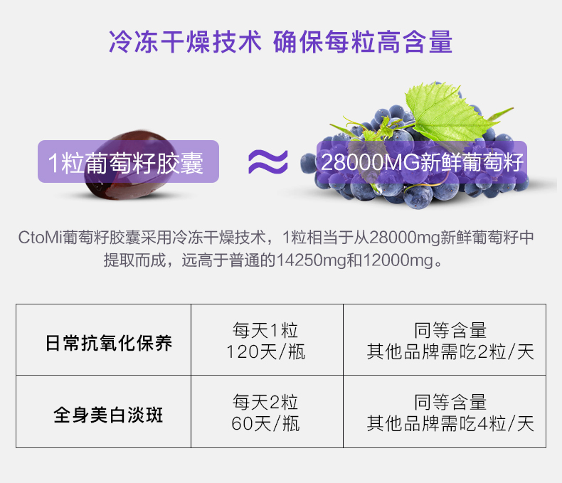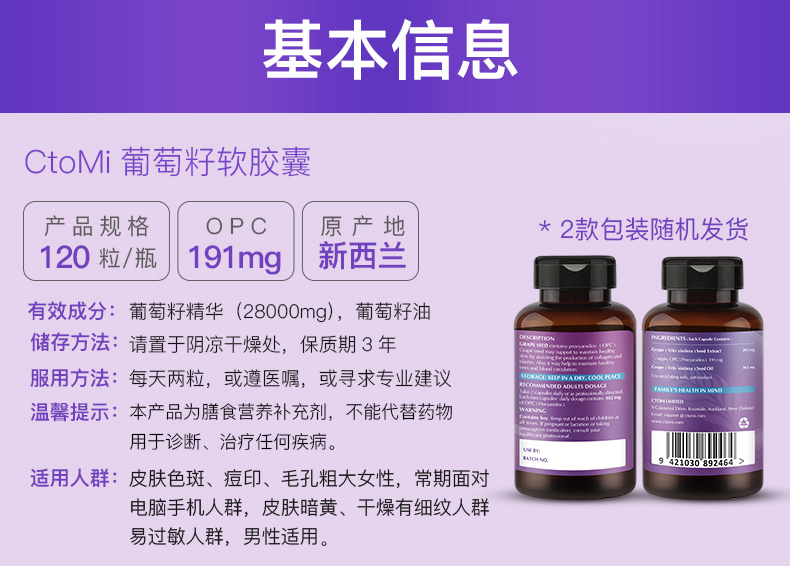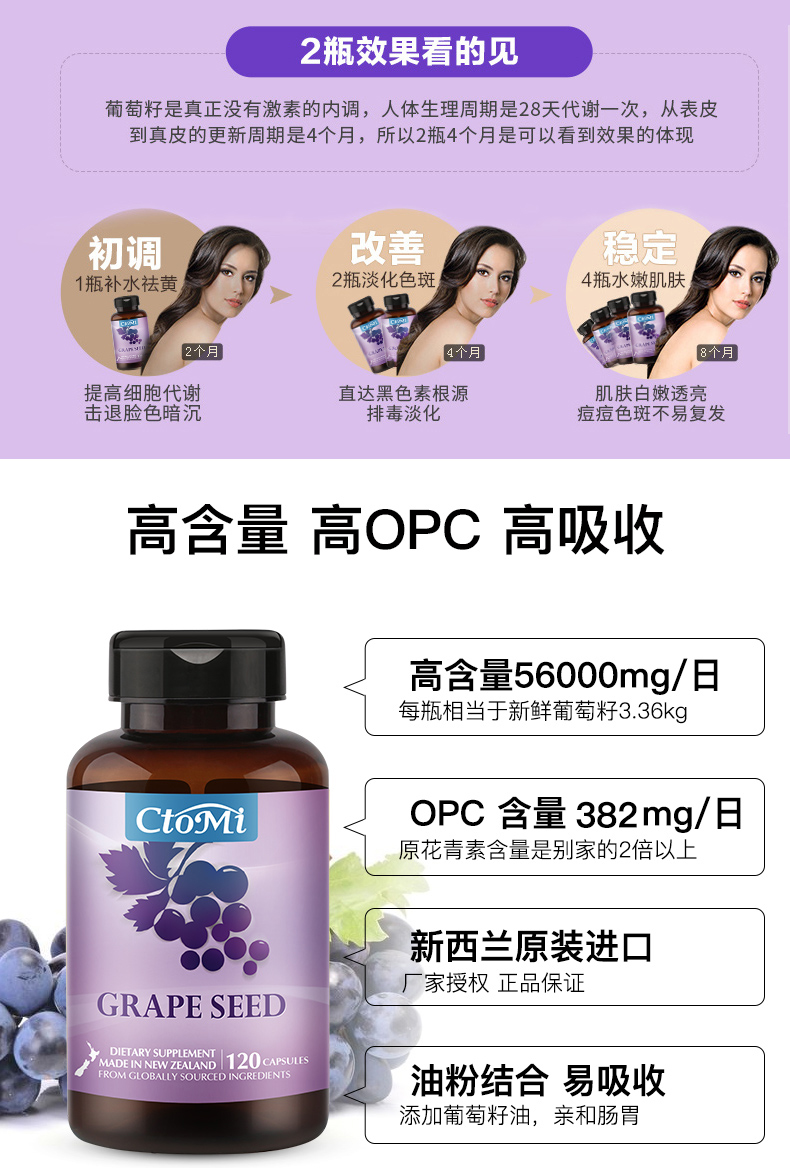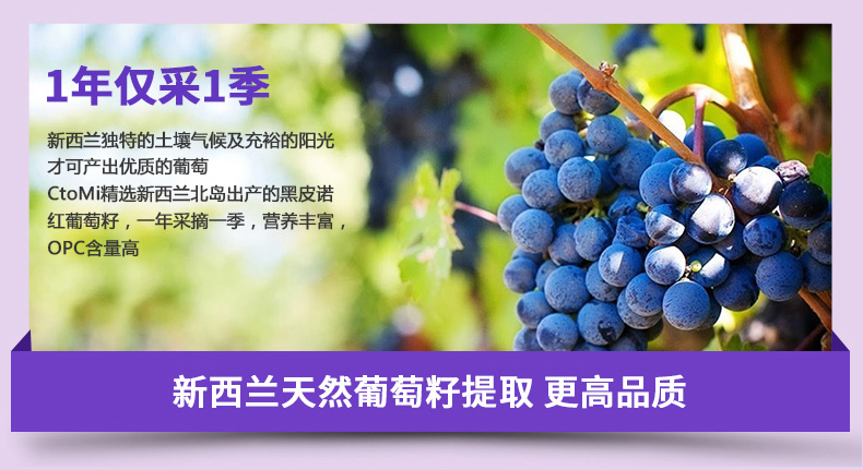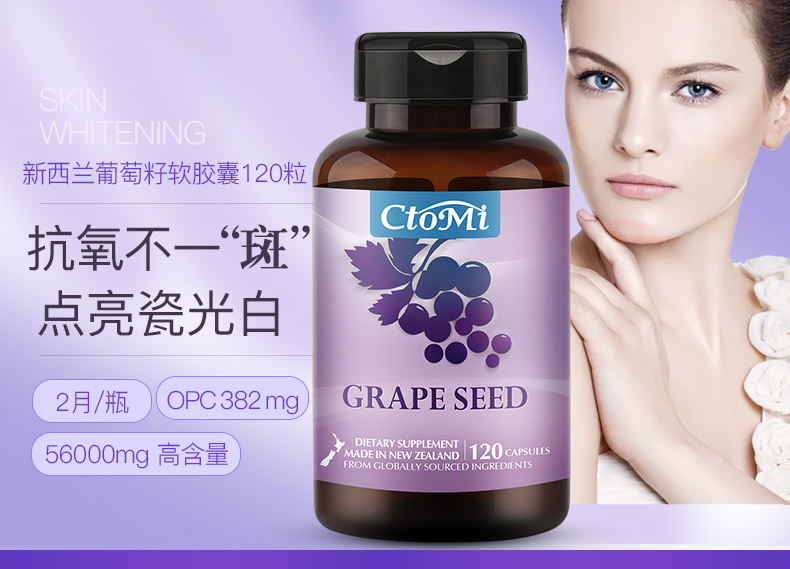 新西兰CtoMi淡斑抗氧化葡萄籽90粒