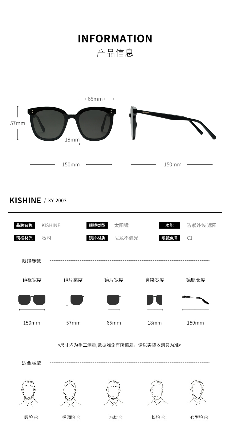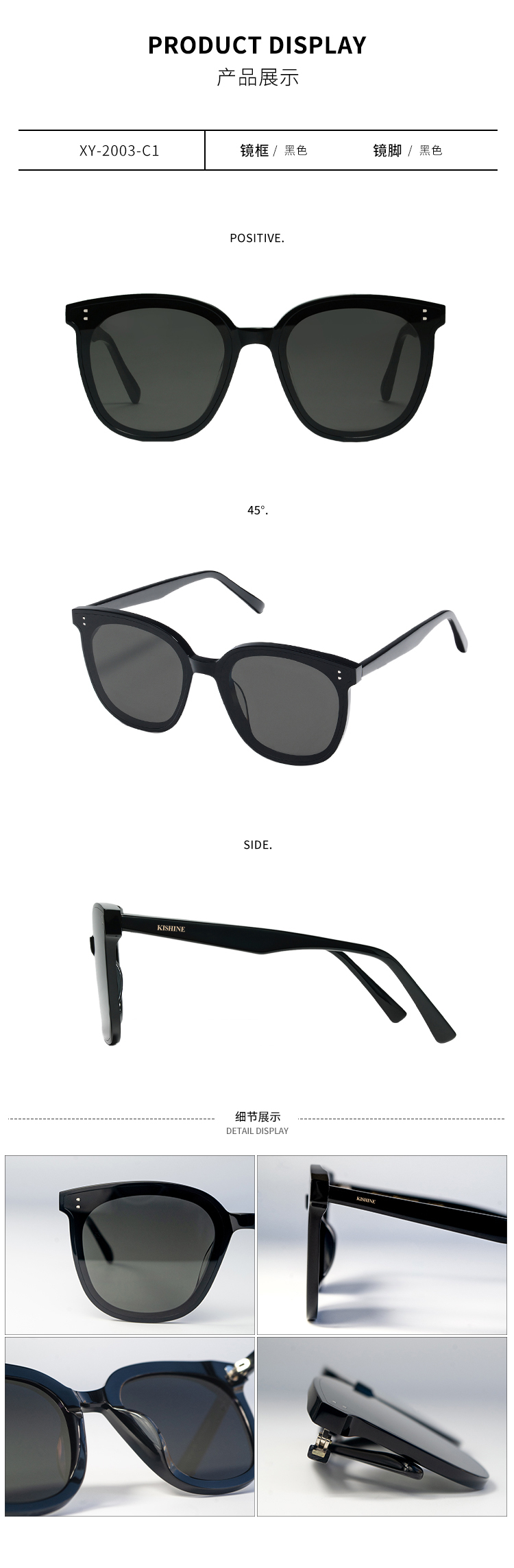 日本KISHINE 太阳墨镜 方圆框全平镜面(XY-2003-C1)