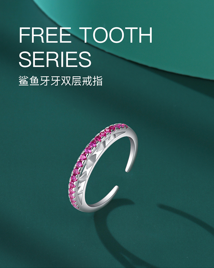 SHARKBABY鲨鱼甜心 原创设计925银双层戒指开口网红指环戒子