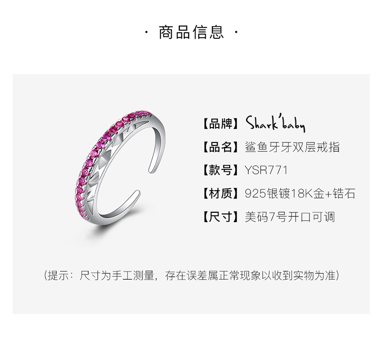 您所在的位置:首页 > 珠宝首饰  > 时尚饰品 > 戒指  > SHARKBABY鲨鱼甜心 原创设计925银双层戒指开口网红指环戒子