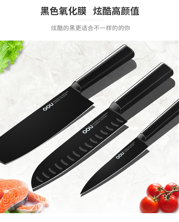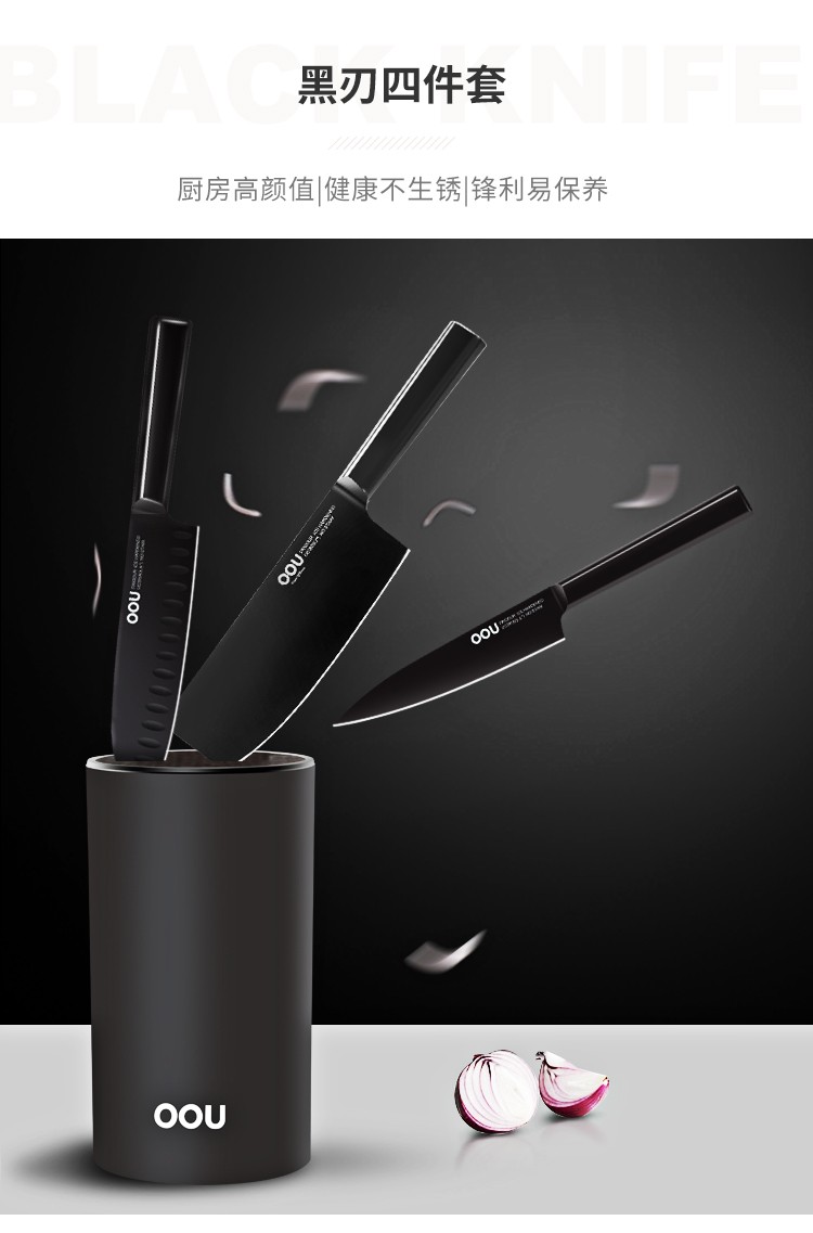 【授权商品】OOU!刀具套装 刀具四件套 黑鲨随意插四件套 菜刀+厨师刀+水果刀+刀座