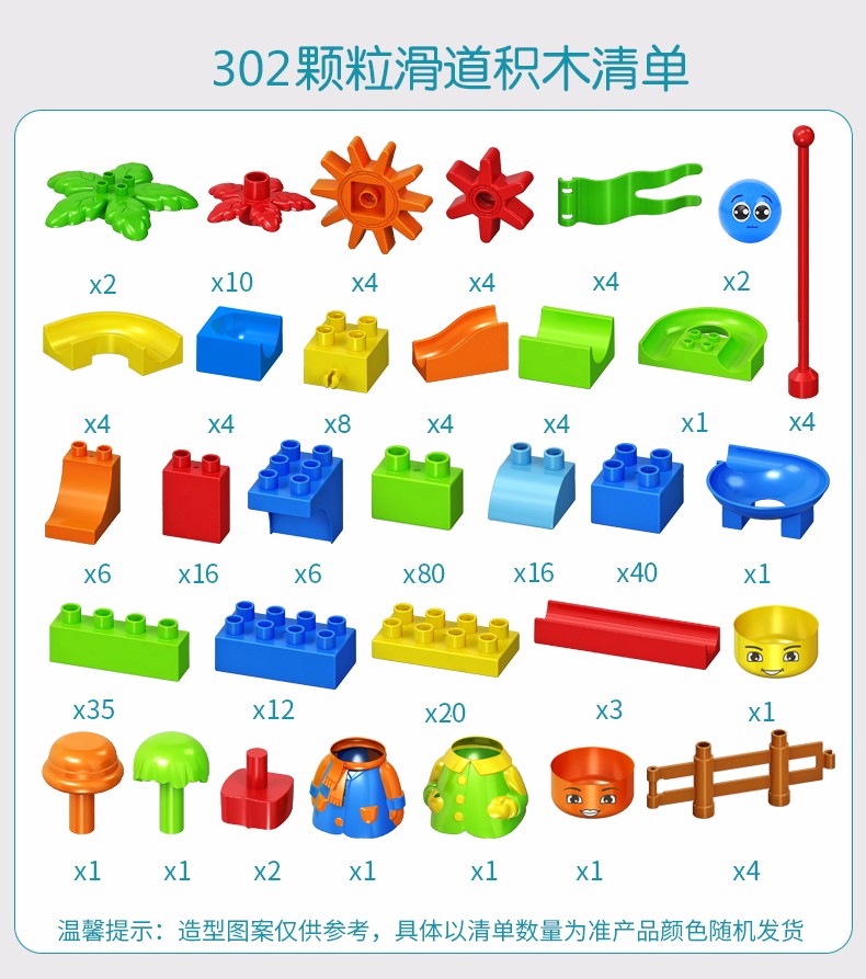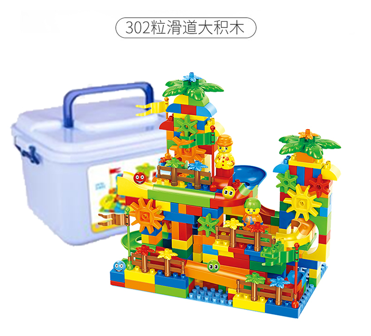 智恩堡大颗粒轨道积木(302颗) 益智拼插男孩女孩玩具收纳桶装