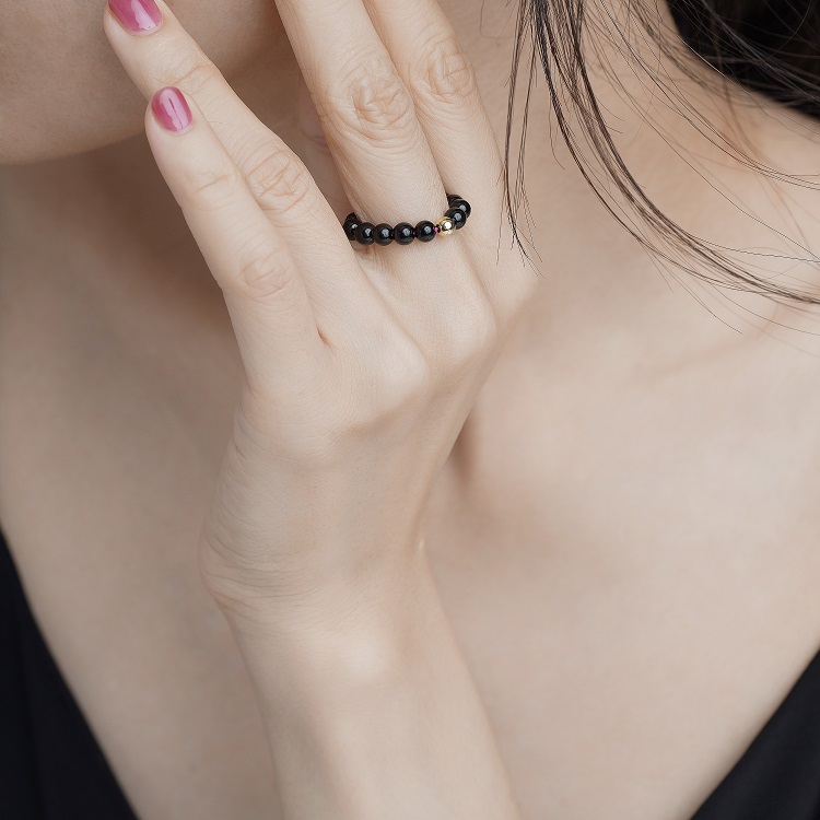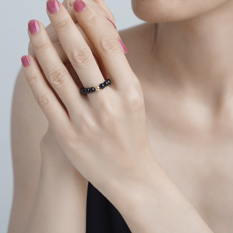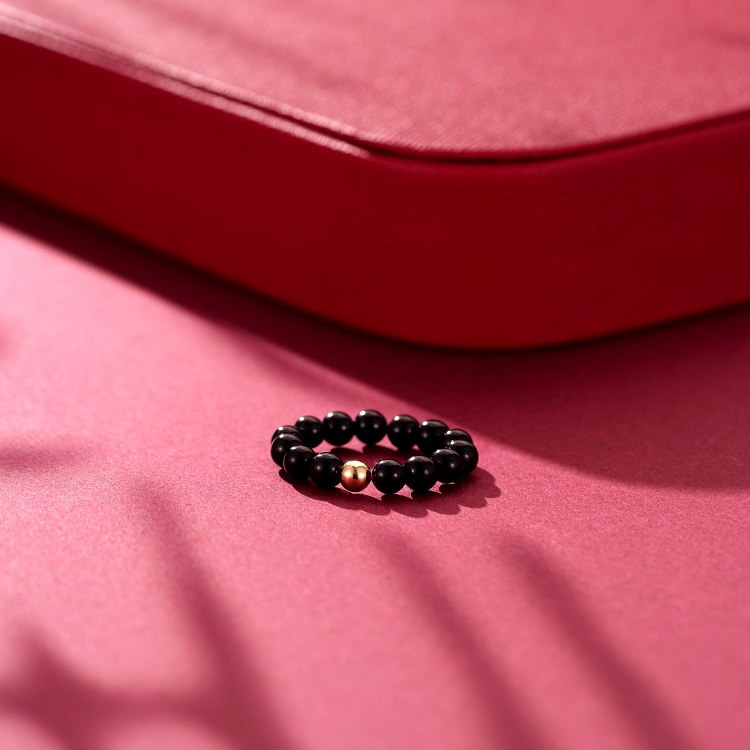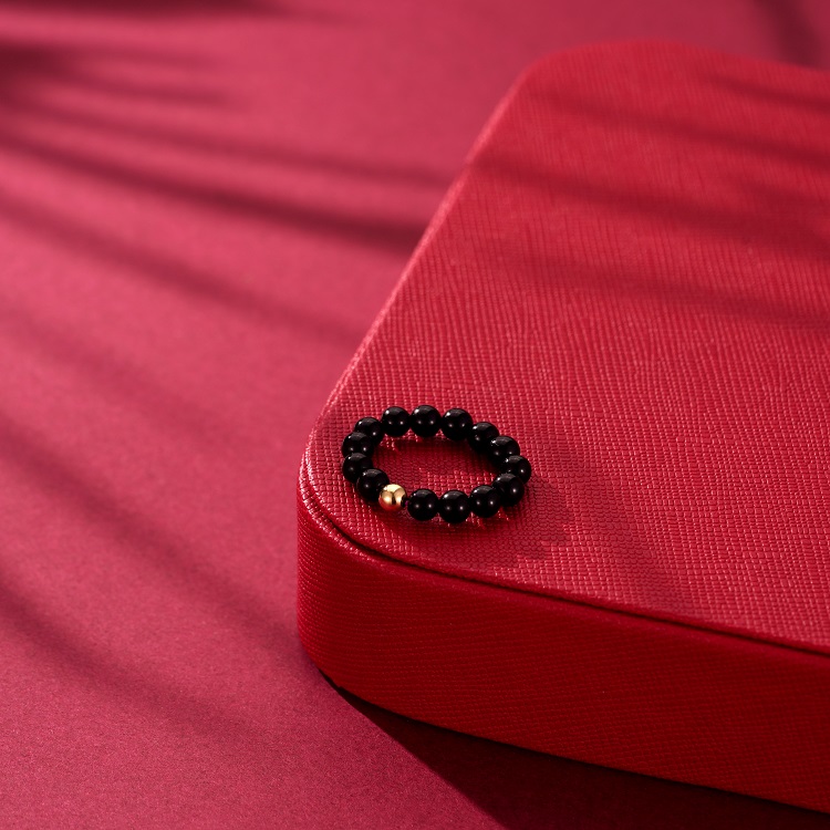 四福珠宝18K金珠黑玛瑙戒指