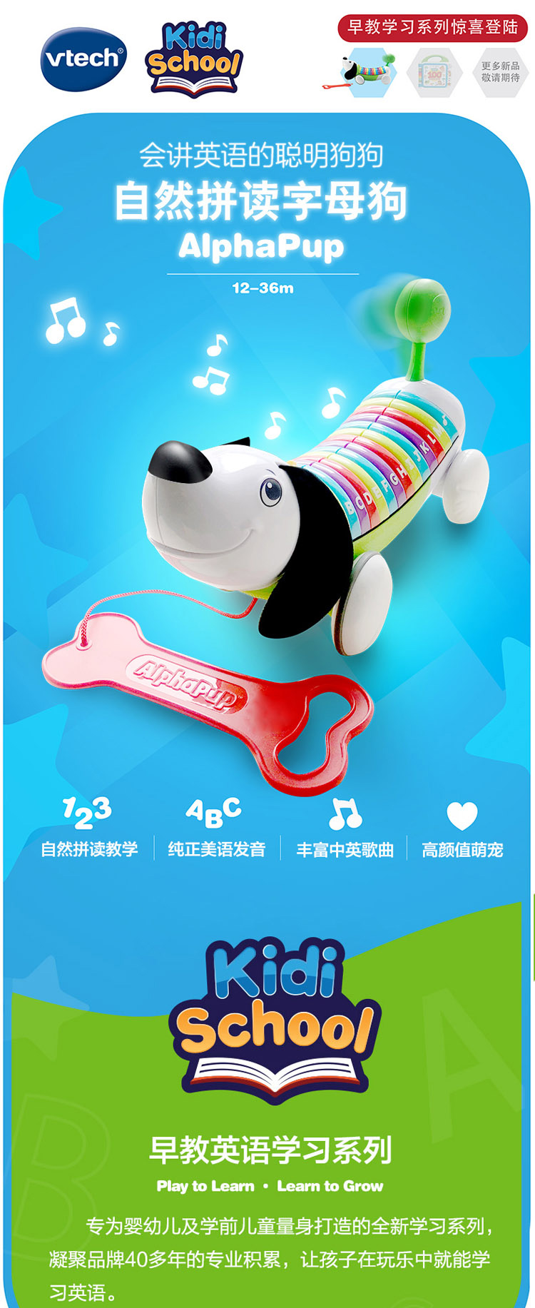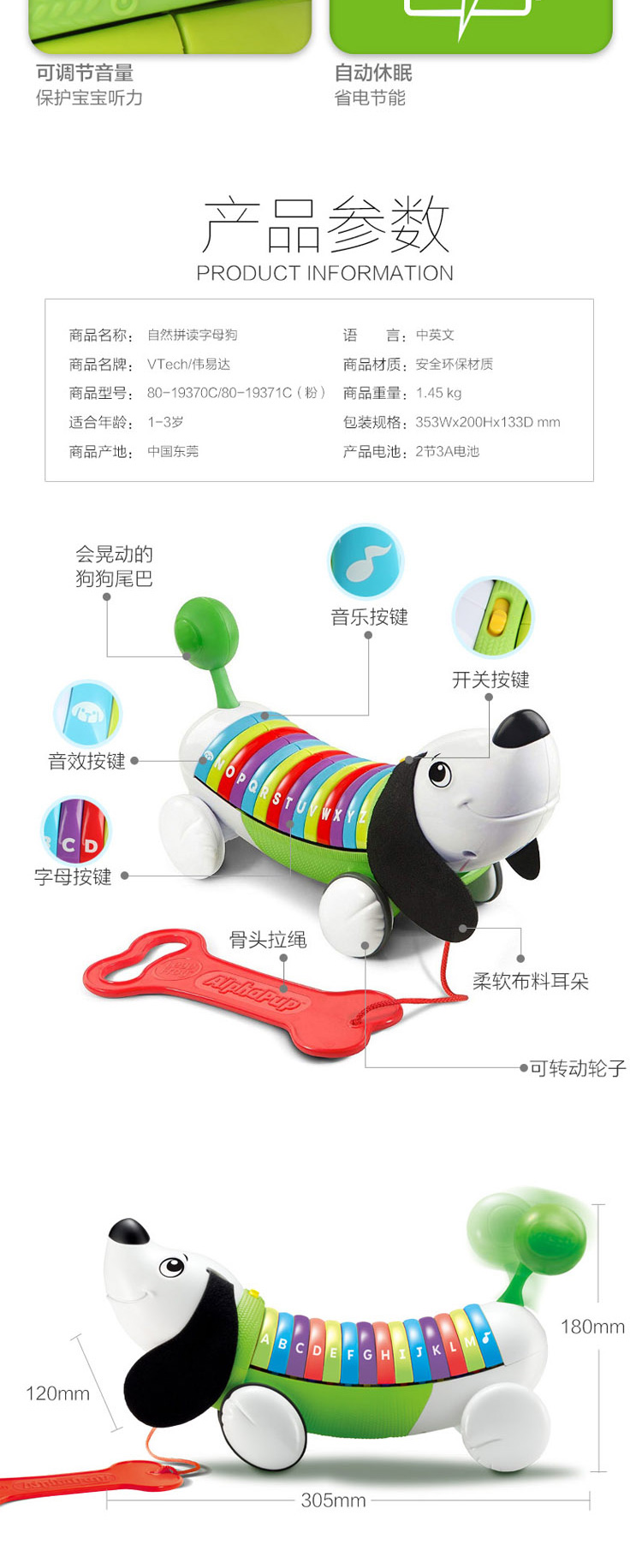 伟易达(Vtech)早教英语学习教具宝宝拖拉玩具1-6岁儿童礼物 自然拼读字母狗(粉)80-19371C