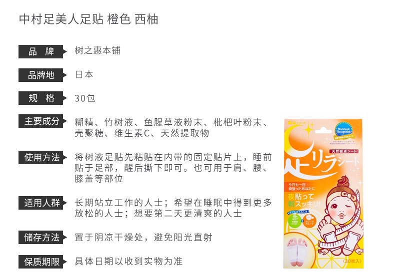 树之惠本铺 中村足美人足贴 橙色 西柚 30包