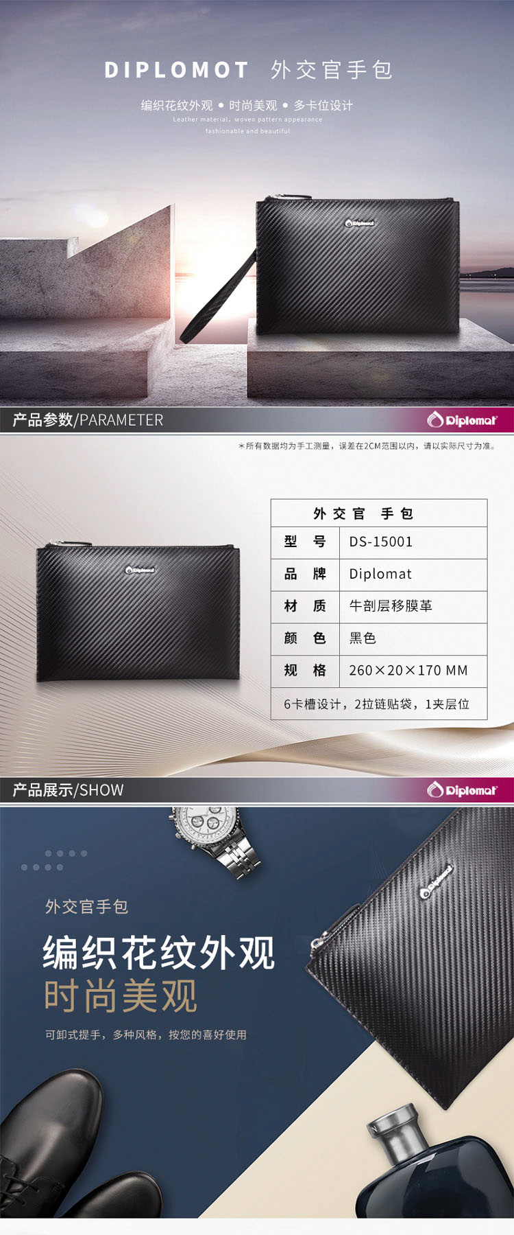 您所在的位置:首页 > 服饰箱包  > 精品男包 > 手包  > 【授权商品】外交官Diplomat 黑色手包男士DS-15001