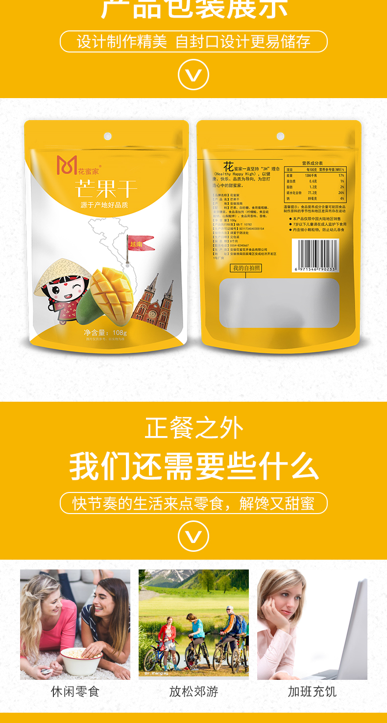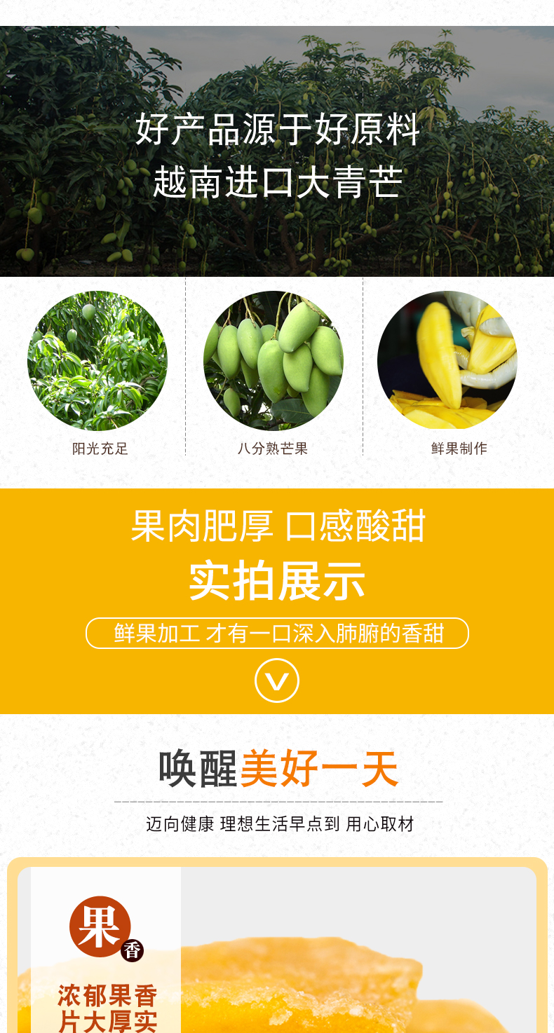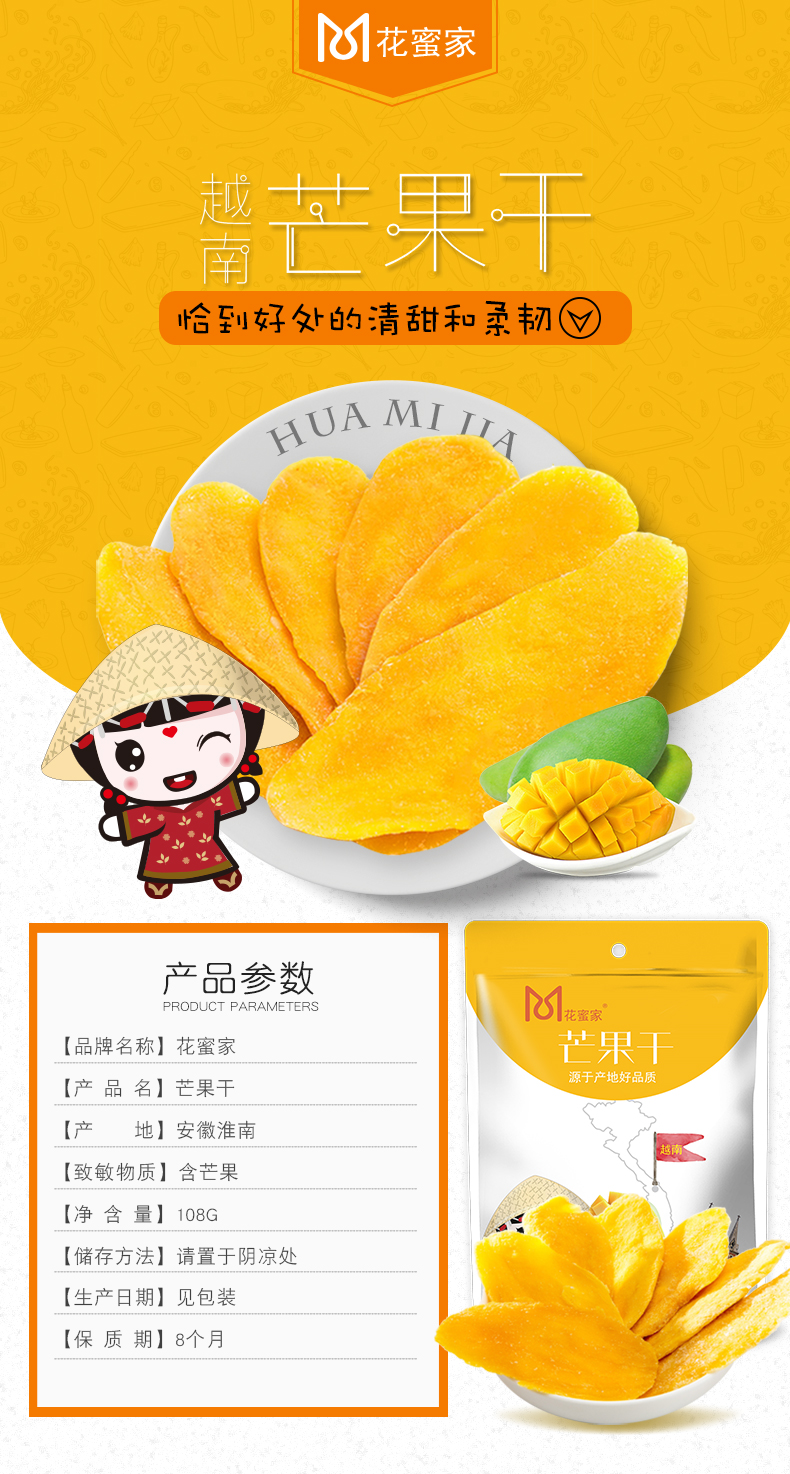 花蜜家芒果干 选自越南大青芒果实厚实 酸甜美味浓郁果香108g