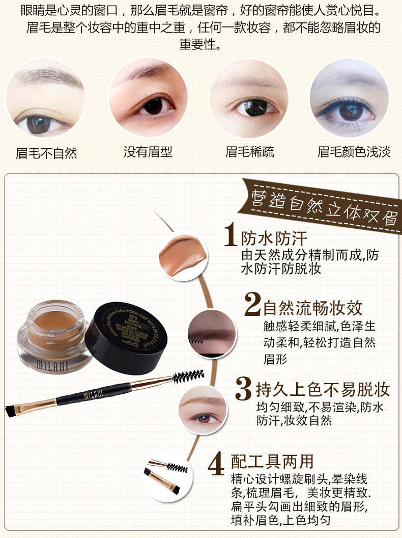 您所在的位置:首页 > 美妆护肤  > 香水彩妆 > 眉笔/眉粉  > 【香港直邮】美国milani持久眉膏 带眉刷-04号色