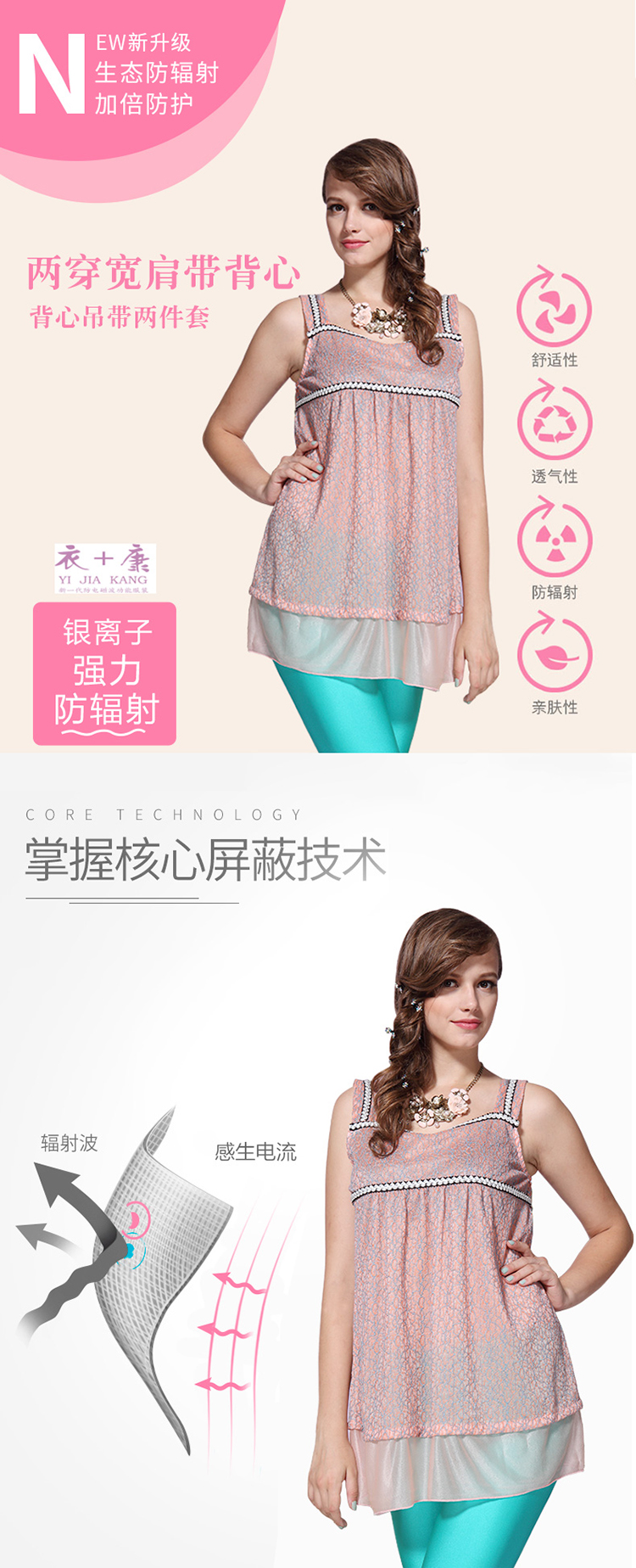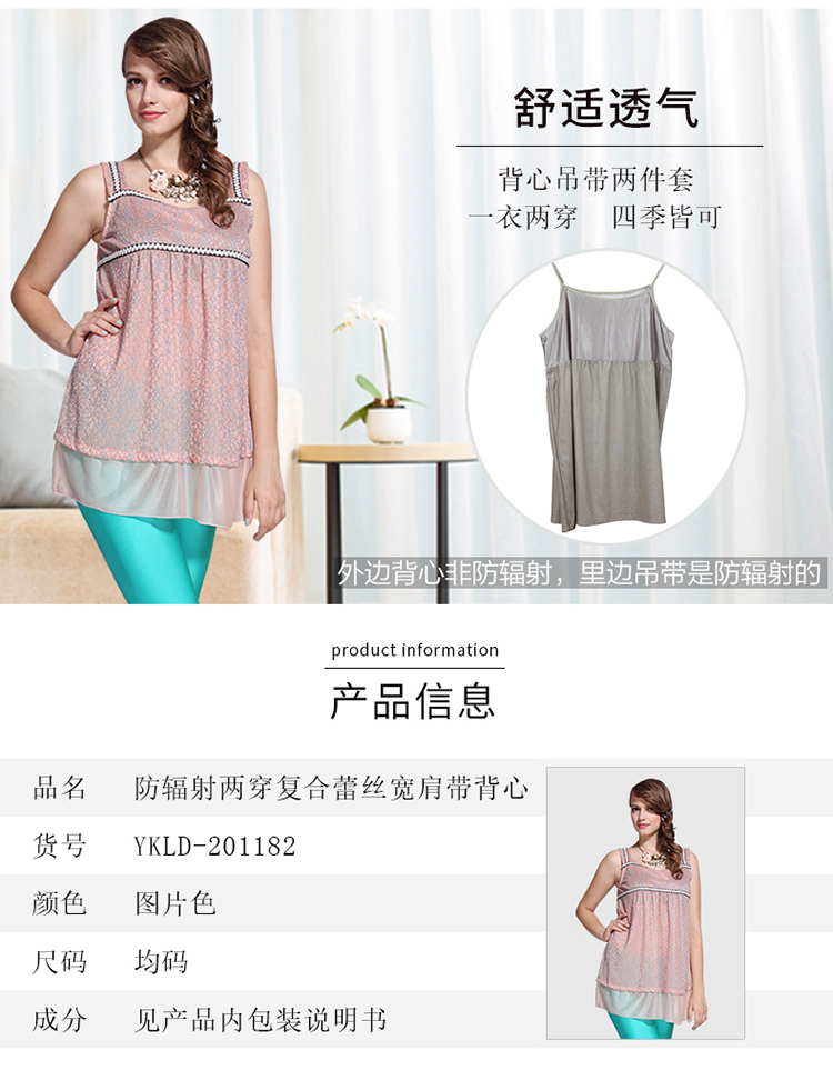 您所在的位置:首页 > 母婴用品  > 妈妈专区 > 防辐射服  > 衣+康 银离子防辐射两穿复合蕾丝宽肩带背心(两件套)