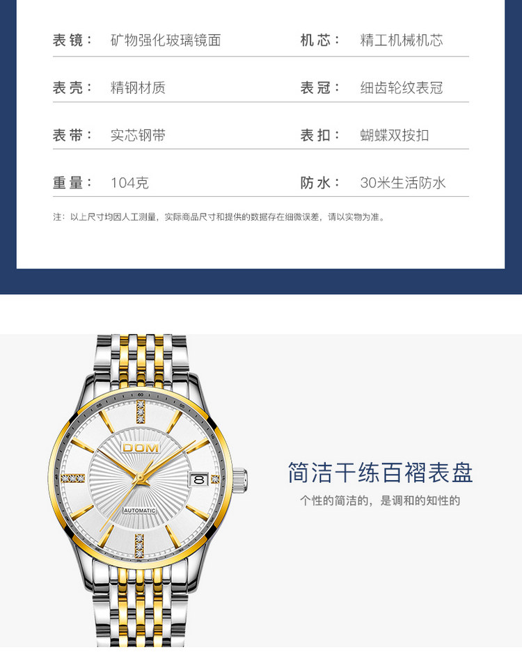 您所在的位置:首页 > 服饰箱包  > 饰品/手表 > 机械表  > 多姆(DOM)手表女夜光防水全自动机械表G-79G-2M蓝色