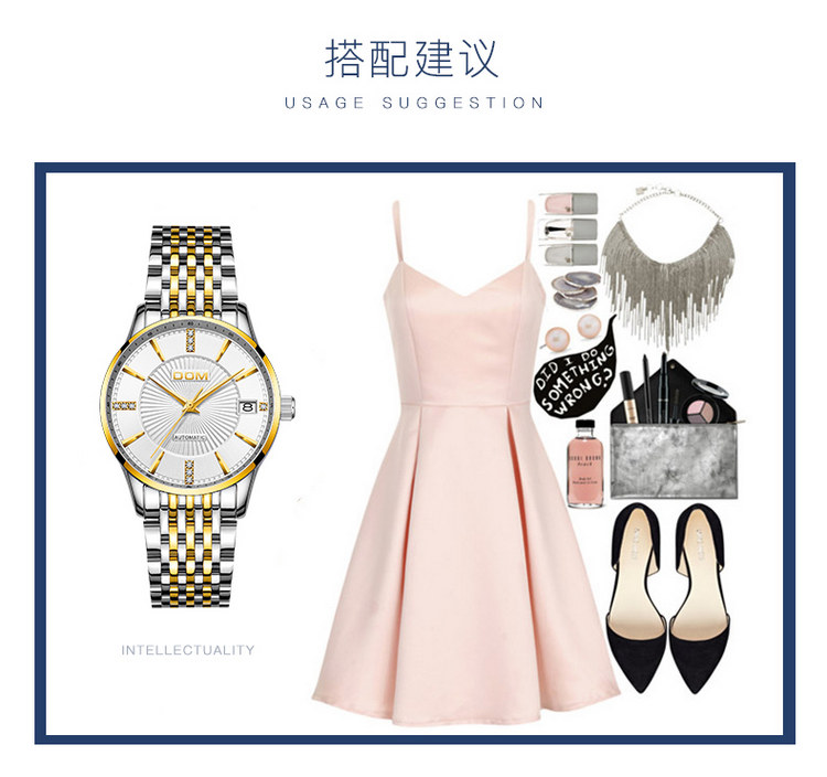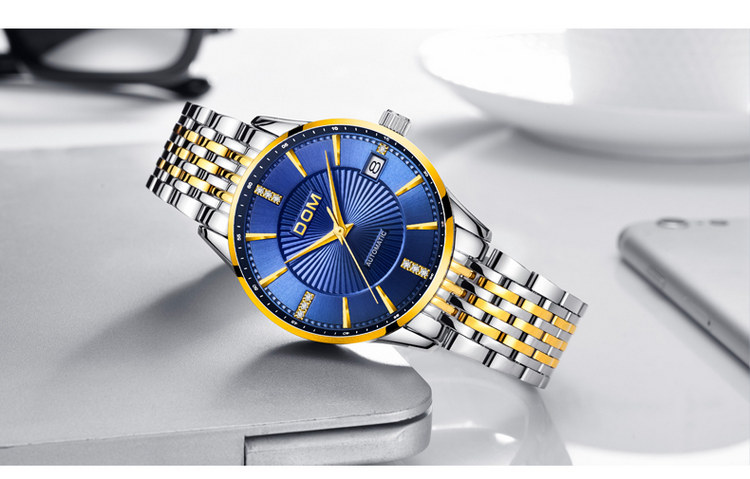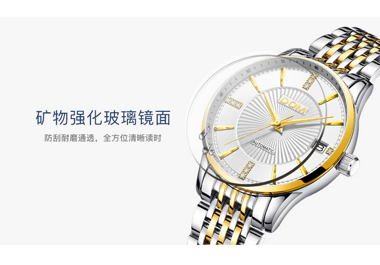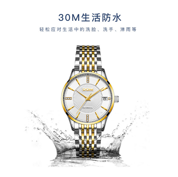 多姆(DOM)手表女夜光防水全自动机械表G-79G-2M蓝色